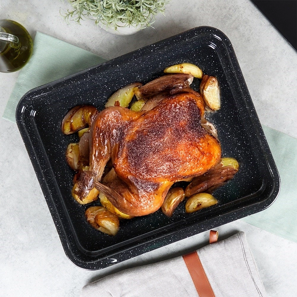 • Blacha wykonana ze stali emaliowanej. Idealna do pieczenia, smażenia wszystkich rodzajów mięs oraz wielu innych potraw. Łatwa w utrzymaniu czystości - potrawy nie przywierają.
