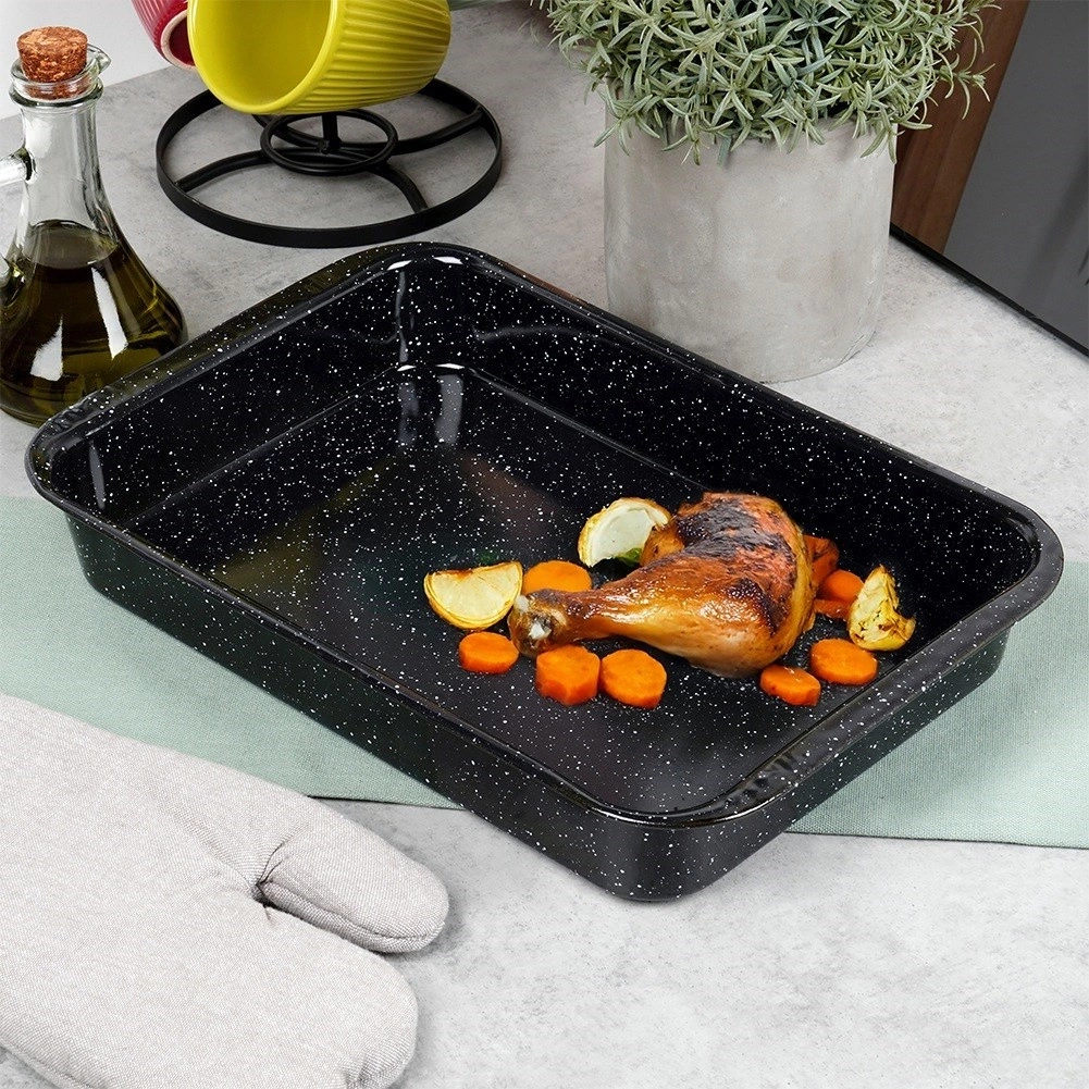 • Blacha wykonana ze stali emaliowanej. Idealna do pieczenia mięs, ciast, warzyw i innych.