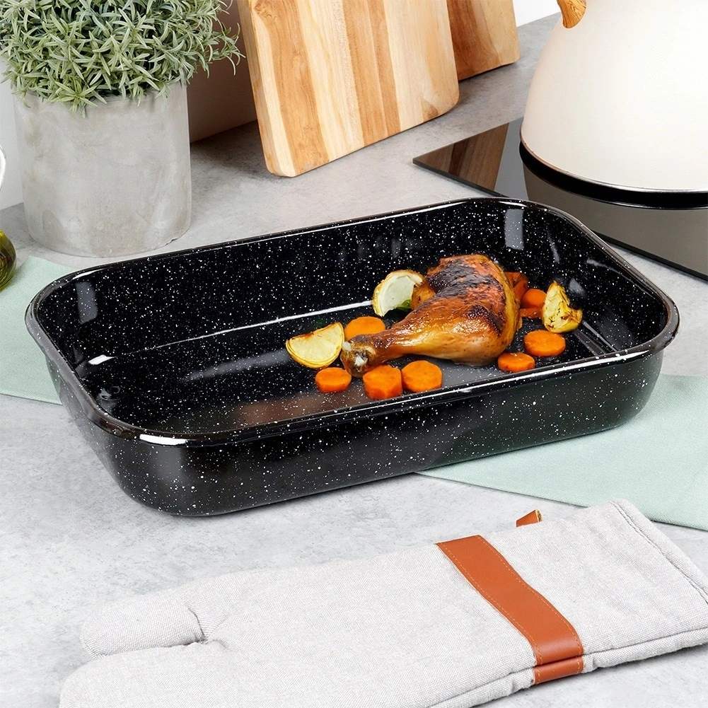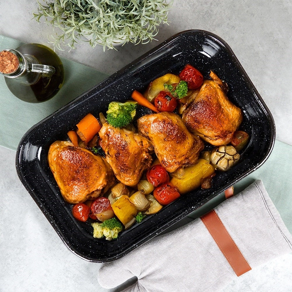 • Blacha wykonana ze stali emaliowanej. Idealna do pieczenia, smażenia wszystkich rodzajów mięs oraz wielu innych potraw. Łatwa w utrzymaniu czystości - potrawy nie przywierają.
