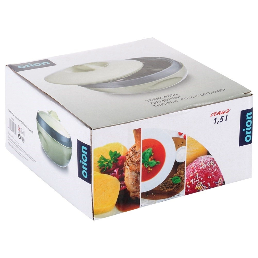 Termomisa do przechowywania potraw. Utrzyma ciepło umieszczonej w niej potrawy. Latem możemy przechowywać w niej lody np. podczas przyjęć w ogrodzie, by uniknąć szybkiego roztopienia lodów. Termomisa jest lekka, co zapewni wygodne przenoszenie. Wewnętrzna, gładka powierzchnia zapewni wygodne mycie. W celu utrzymania dłużej zimnej temperatury w termomisie należy umieścić ją na około godzinę do lodówki przed włożeniem zawartości, chcąc utrzymać dłużej ciepło potraw należy wlać do termomisy gorącą wodę i wylać ją po 1-2 minutach. Oryginalny produkt czeskiej marki Orion. Wyprodukowano zgodnie z europejskimi standardami.