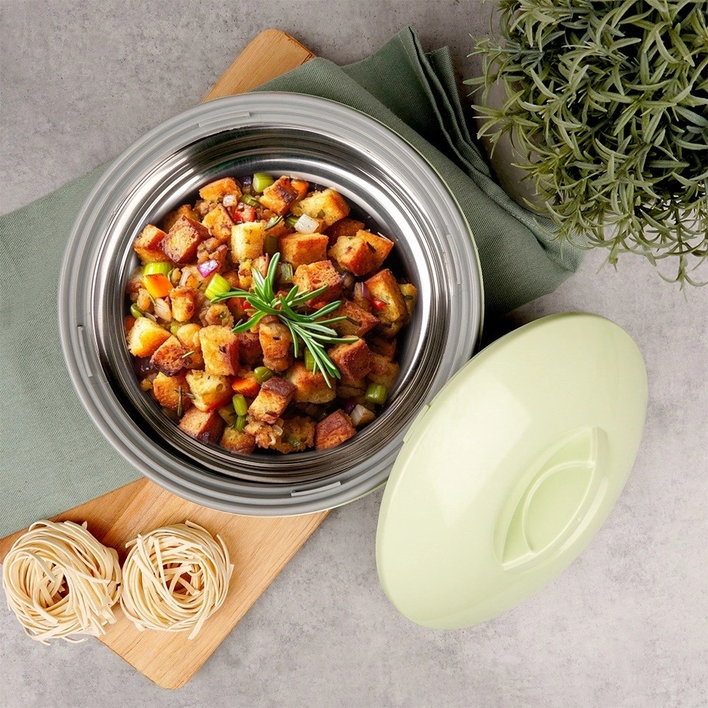 • PRAKTYCZNA - Termomisa do utrzymywania ciepła przechowywanych potraw. Termos obiadowy ma pojemność maksymalną 1,5 litra a pojemność użytkowa wynosi 1,3 litry. Termomisa ma wymiary 20 x 12 cm. Termomisa z serii Venus.