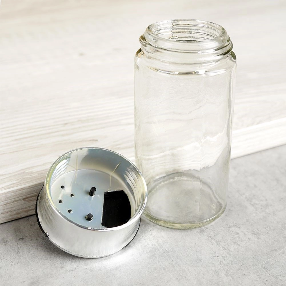 • Szklany pojemnik o pojemności 100 ml na przyprawy z nakrętką. Łatwe dozowanie dzięki otworom, które są zamykane za pomocą praktycznej klapki.