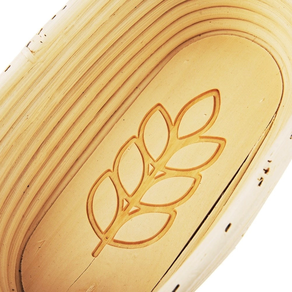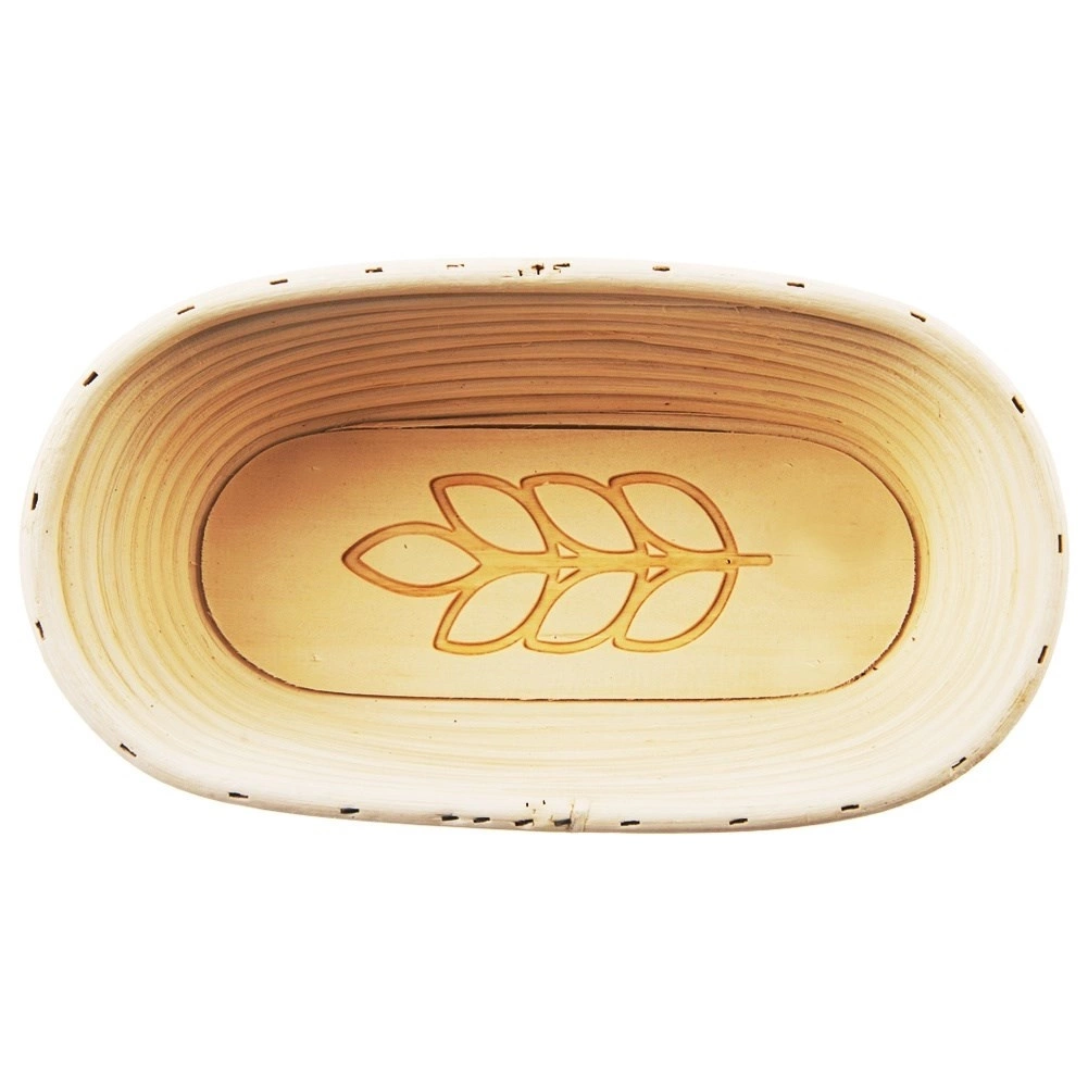 - PRZYDATNY - Koszyk do przygotowywania domowego chleba z motywem kłosa. Koszyk ma wymiary 26 x 13 x 9 cm.
