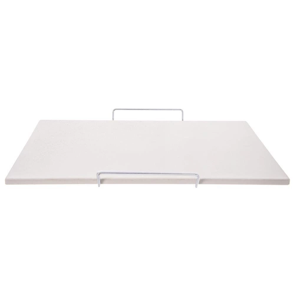 Zestaw zawiera kamień do pieczenia oraz stojak z drutu. Wymiary kamienia: 44 x 30 x 1 cm. W celu odpowiedniej konserwacji należy myć go ręcznie, nie nadaje się do mycia w zmywarce. Kamień do pizzy został wykonany z szamotu dzięki czemu chłonie wilgoć, a ciasto piecze się równomiernie i jest bardzo kruche. Oryginalny produkt czeskiej marki Orion. Wyprodukowano zgodnie z europejskimi standardami.
