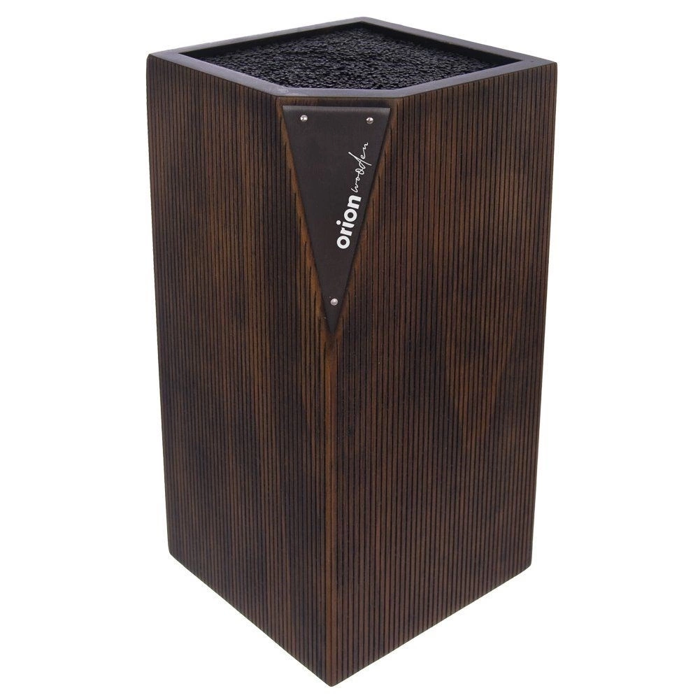 - Stojak na noże i przybory kuchenne wykonany z drewna.