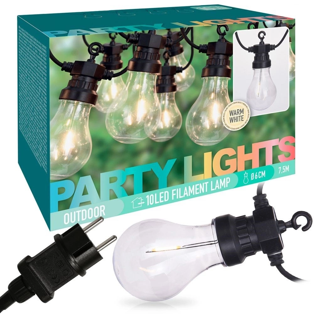 • UNIWERSALNA - Ozdobna girlanda nadaje się do stosowania w pomieszczeniach oraz na zewnątrz w ogrodzie, tarasie, czy na balkonie. Girlanda ozdobna o długości 7,5 metra. Posiada 10 przezroczystych żarówek typu LED o średnicy 6 cm.