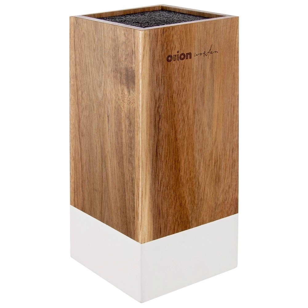• Stojak z drewna akacjowego na noże z włosiem z tworzywa sztucznego zapobiega porysowaniu noży i innych narzędzi kuchennych - nożyczek, obieraczek, itd.