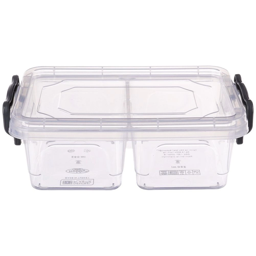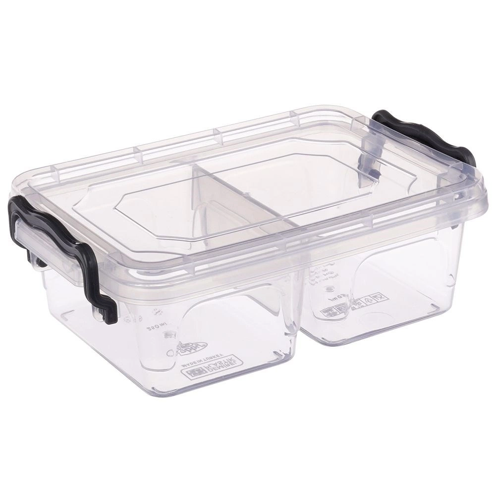 Pojemnik do przechowywania o wymiarach 16,5 x 11 x 5,5 cm i pojemności 500 ml. Wykonany z wysokiej jakości tworzywa w przezroczystym kolorze. Przezroczysta forma pojemnika pozwoli nam zobaczyć co jest w środku. Pojemnik jest niezwykle praktyczny, gdyż jest dzielony na dwie części. Może służyć również jako lunch boxa, w którym przeniesiemy ulubione przekąski do pracy, szkoły czy na wycieczkę. Zamykany za pomocą dwóch klipsów, które mogą również pełnić rolę uchwytów. Nadaje się do przechowywania w lodówce oraz zamrażarce. Wyczyścimy go w łatwy sposób, gdyż nadaje się również do mycia w zmywarce do naczyń. Oryginalny produkt czeskiej marki Orion. Wyprodukowano zgodnie z europejskimi standardami.