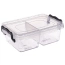 • WYTRZYMAŁY - Wykonany z wysokiej jakości tworzywa w przezroczystym kolorze. Klipsy do zamykania w kolorze fioletowym.