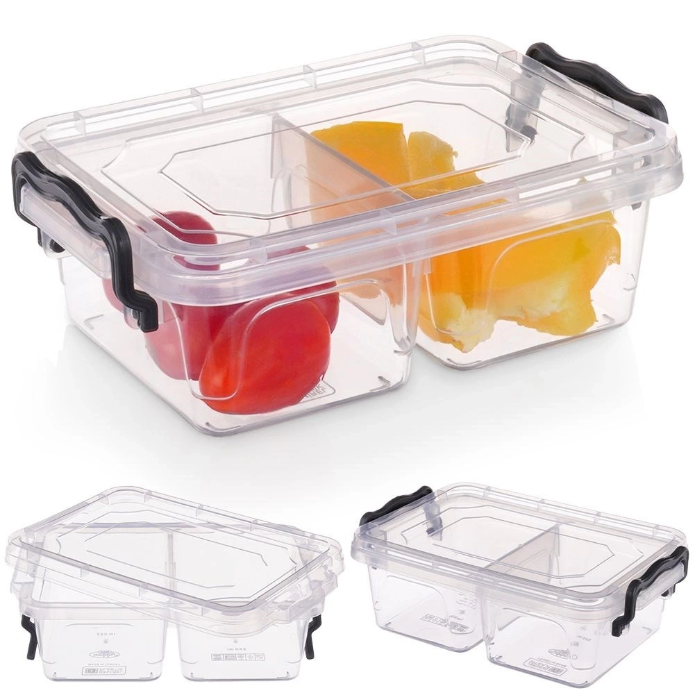 • Wielofunkcyjny pojemnik do żywności, który możesz stosować w zmywarce, lodówce, zamrażarce oraz mikrofalówce. Środek pojemnika podzielony jest na dwie część.