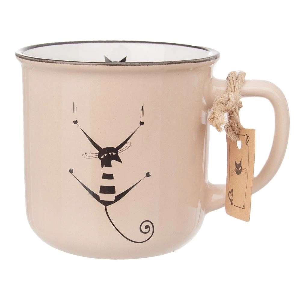 • CERAMICZNY - Kubek wykonany z wysokiej jakości ceramiki w kolorze beżowym a dekor w kolorze czarnym. Wnętrze kubka jest białe.