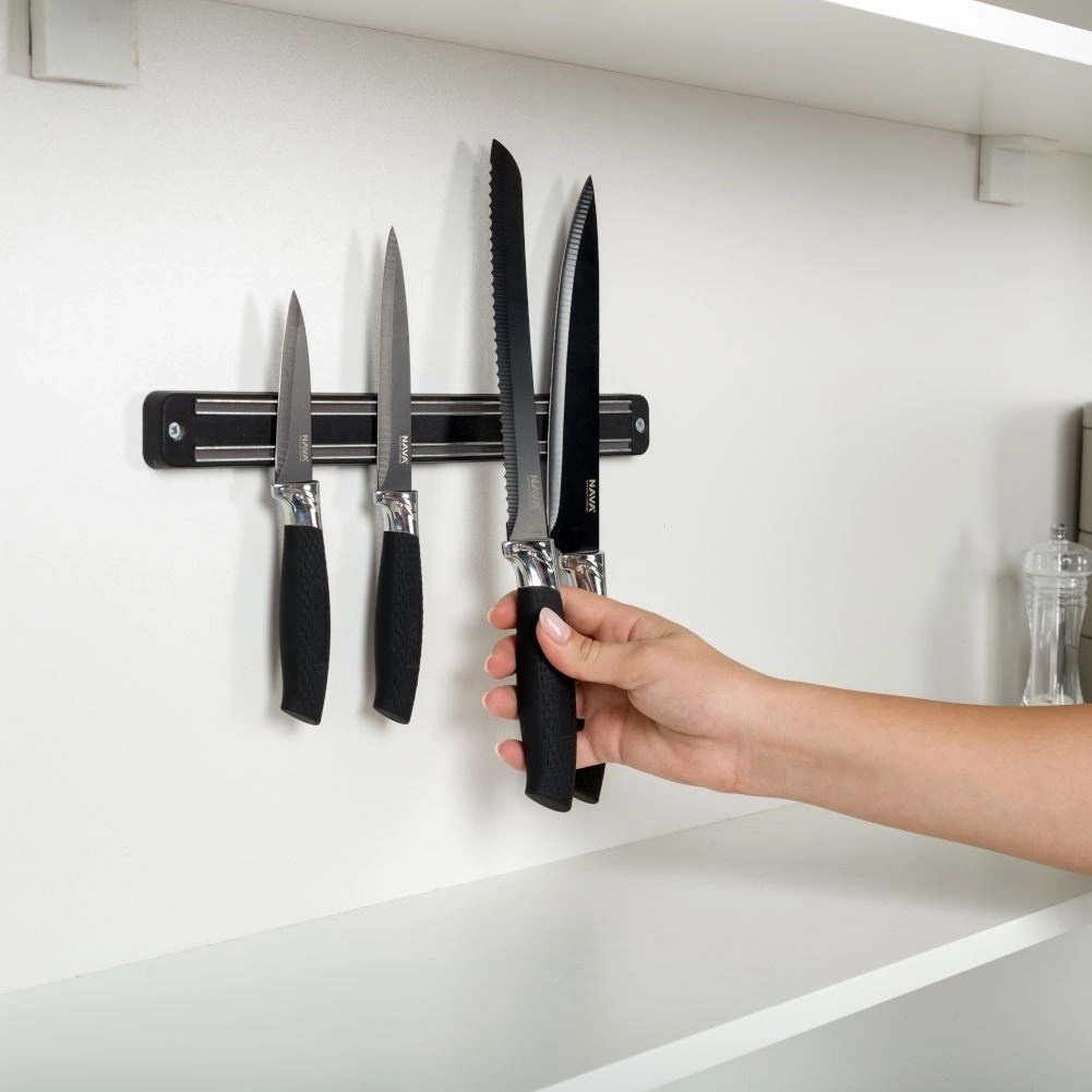 • Listwa magnetyczna pozwoli uporządkować oraz zorganizować przechowywanie akcesoriów i przyborów kuchennych. Szczególnie polecana do noży.