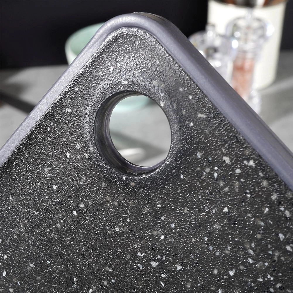 • Wytrzymała deska kuchenna do krojenia wszystkimi typami noży. Wykonana z wysokiej jakości tworzywa imitującego czarny granit.