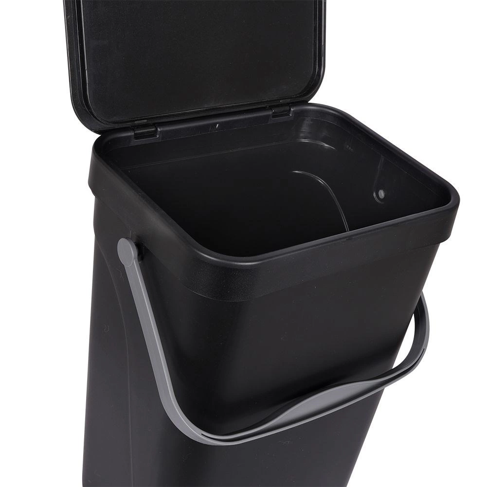 - PRAKTYCZNY - Zamykany kosz na śmieci z uchwytem do przenoszenia. Kosz ma pojemność 10 litrów i wymiary 20 x 24 x 35 cm.