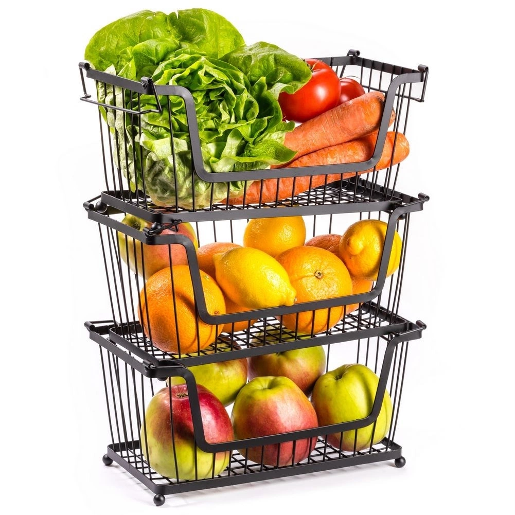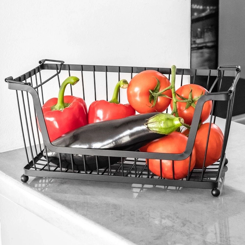 - Piętrowane koszyki tworzą wyjątkowy regał kuchenny.