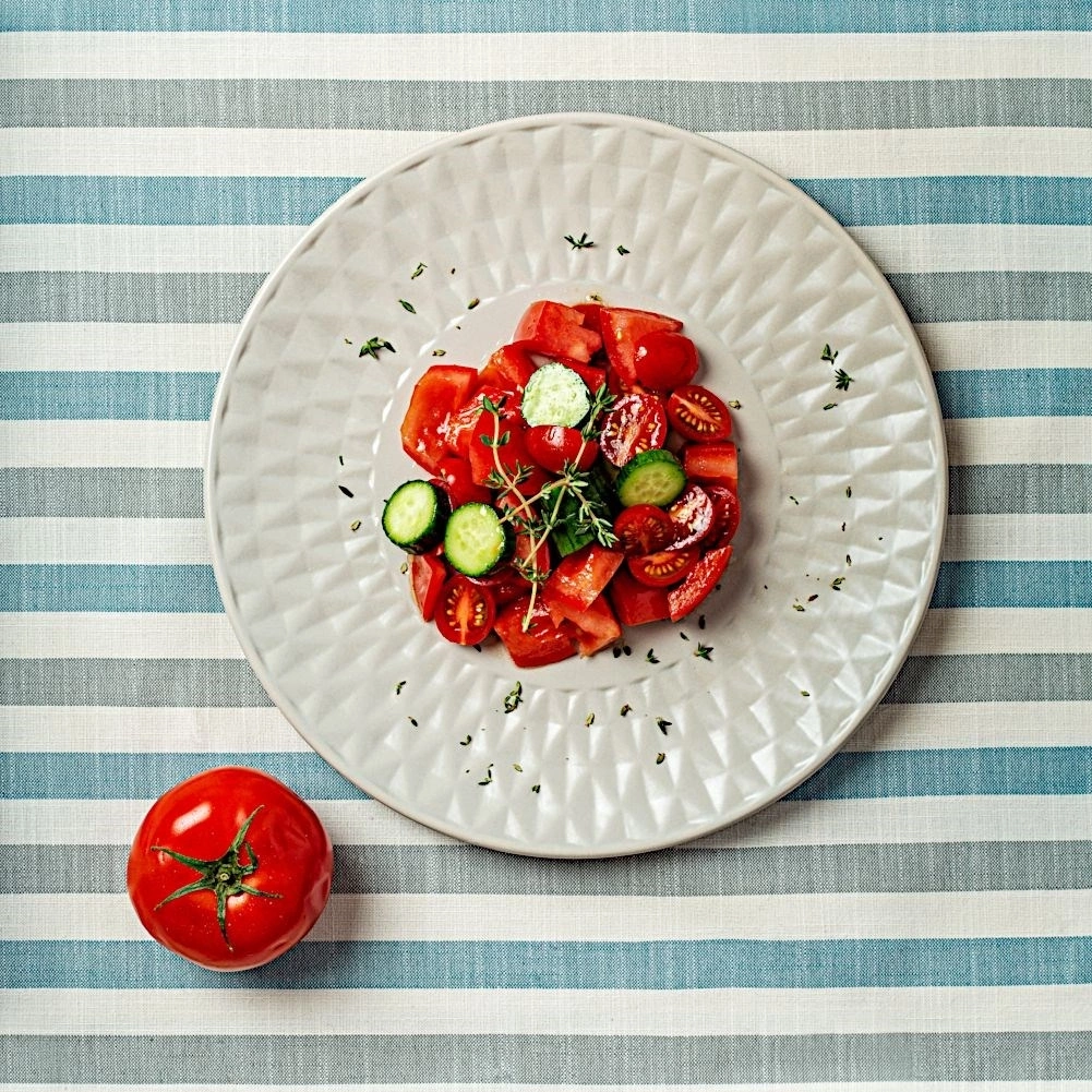 • Płytki talerz deserowy wykonany z ceramiki. Nadaje się do podgrzewania w mikrofalówce oraz mycia w zmywarce do naczyń.
