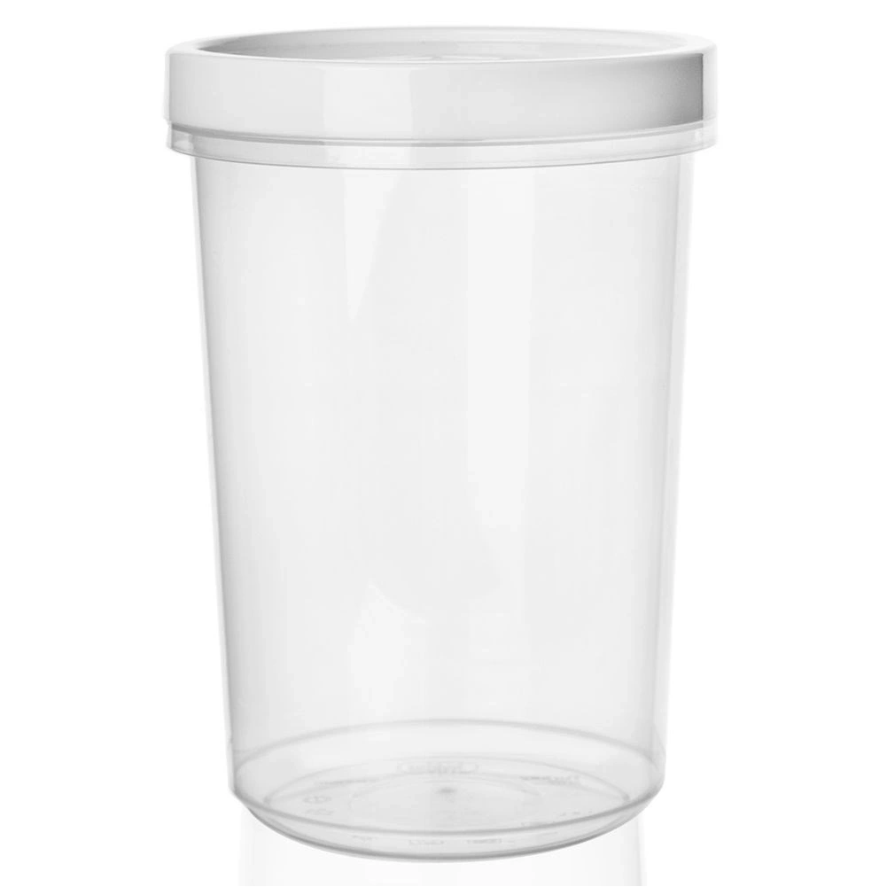 - WYTRZYMAŁY - Praktyczny pojemnik o pojemności 1 litra. Wykonany z wysokiej jakości tworzywa. Pojemnik ma wysokość 15,5 cm i średnicę 11 cm. Tworzywo z którego wykonane są pojemniki nie posiada szkodliwego BPA (bisfenolu).