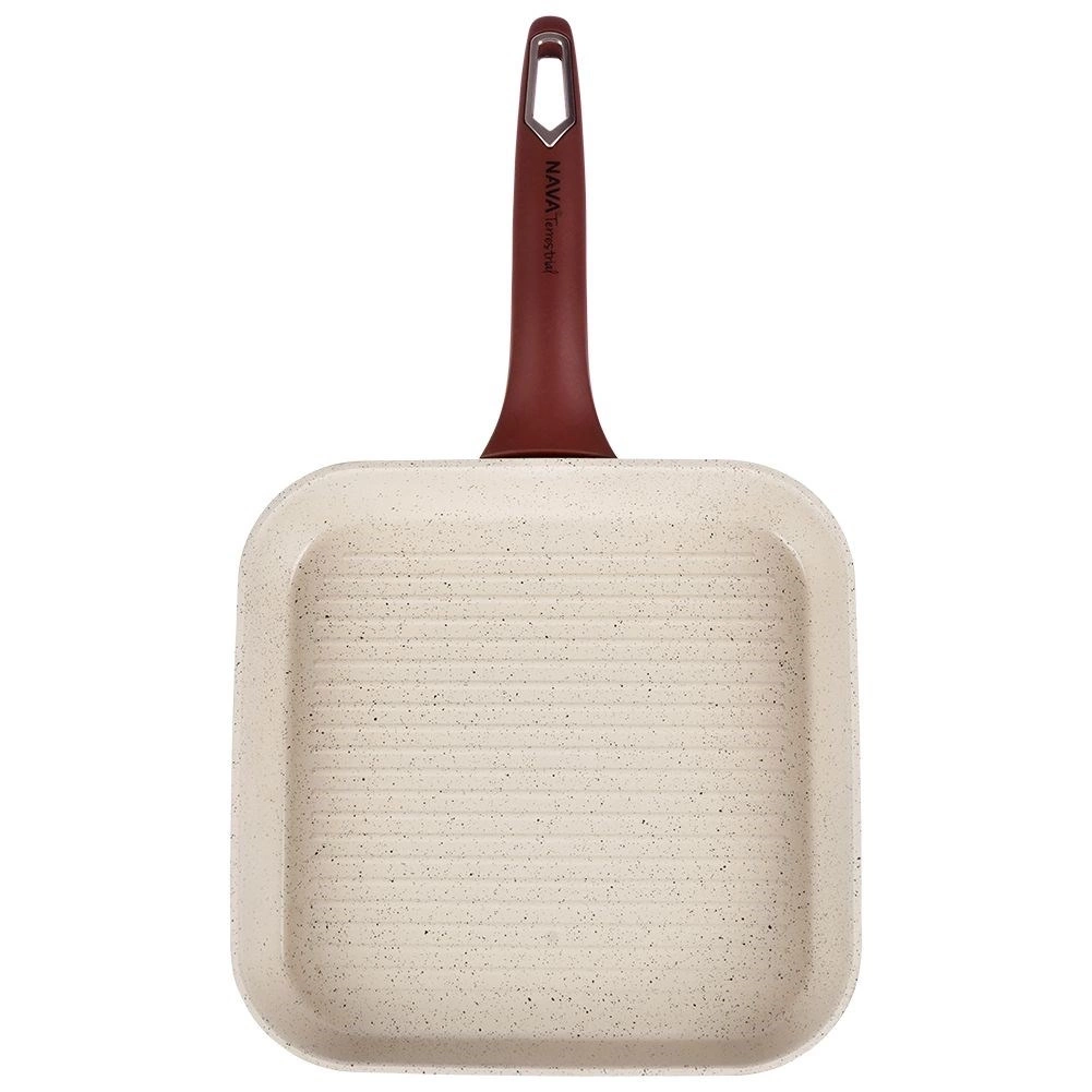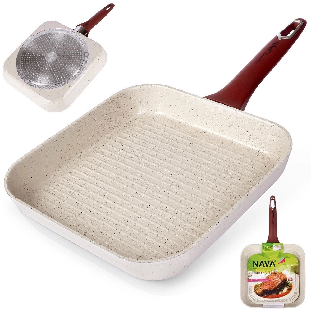 Nieprzywierająca patelnia o wyjątkowym, ponadczasowym wyglądzie. Patelnia sprawdzi się do grillowania różnego rodzaju mięs, ryb, warzyw oraz serów. Oryginalny produkt greckiej marki NAVA z linii naczyń Terrestrial. Wyprodukowano zgodnie z europejskimi standardami.