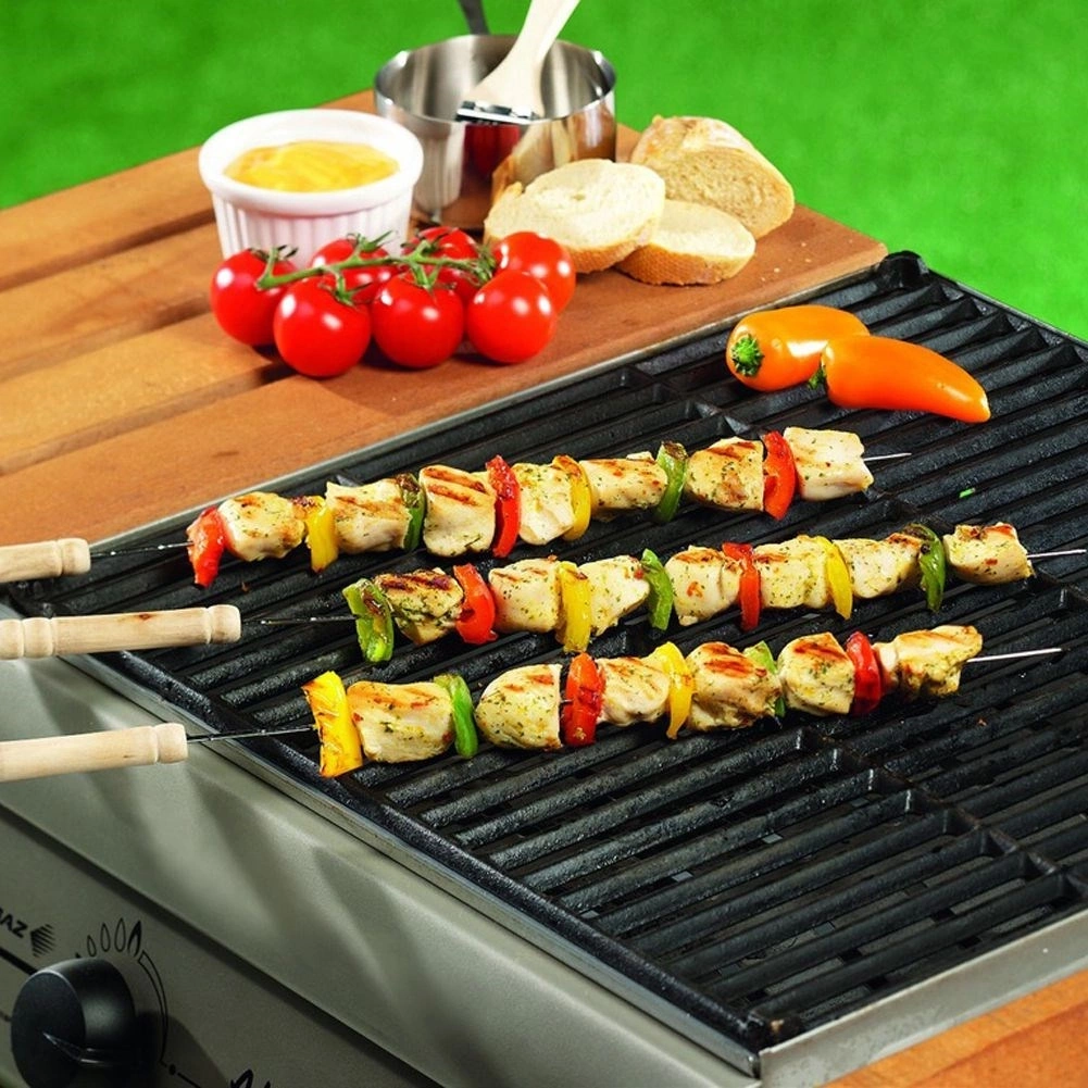 • Zestaw stalowych szpikulców do przygotowywania szaszłyków z warzyw i mięsa. Niezastąpione podczas grillowania i pieczenia w piekarniku.