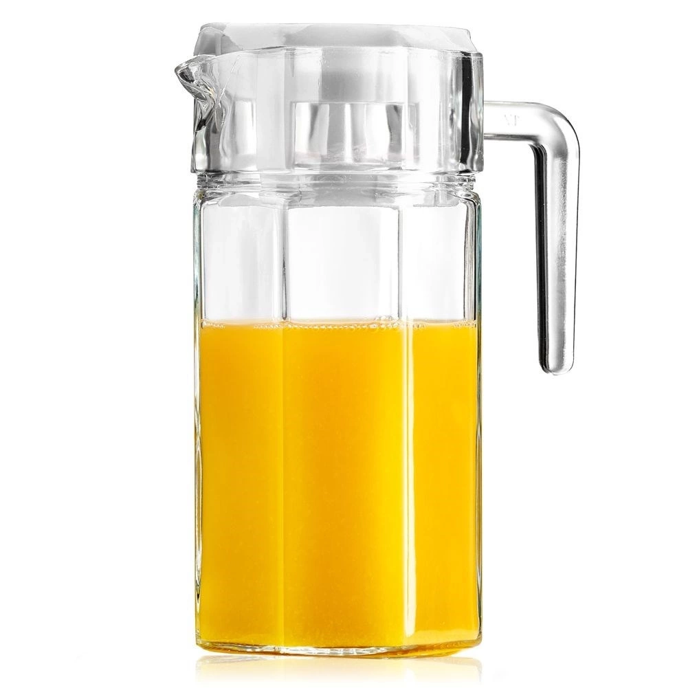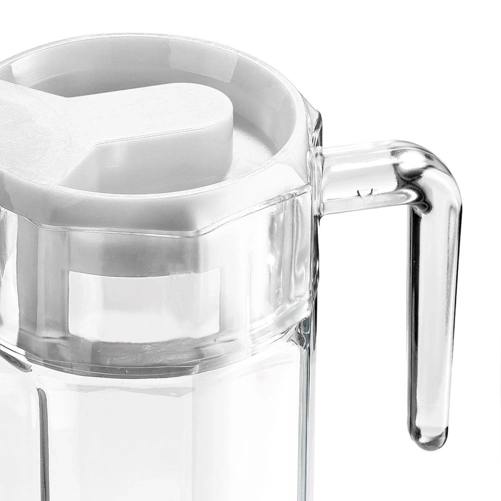 • Uniwersalny dzbanek do napojów z uchwytem i pokrywką o pojemności 1,5 l. Idealnie sprawdzi się do wody, serwowania soków, lemoniady, herbaty mrożonej, kompotu itp.