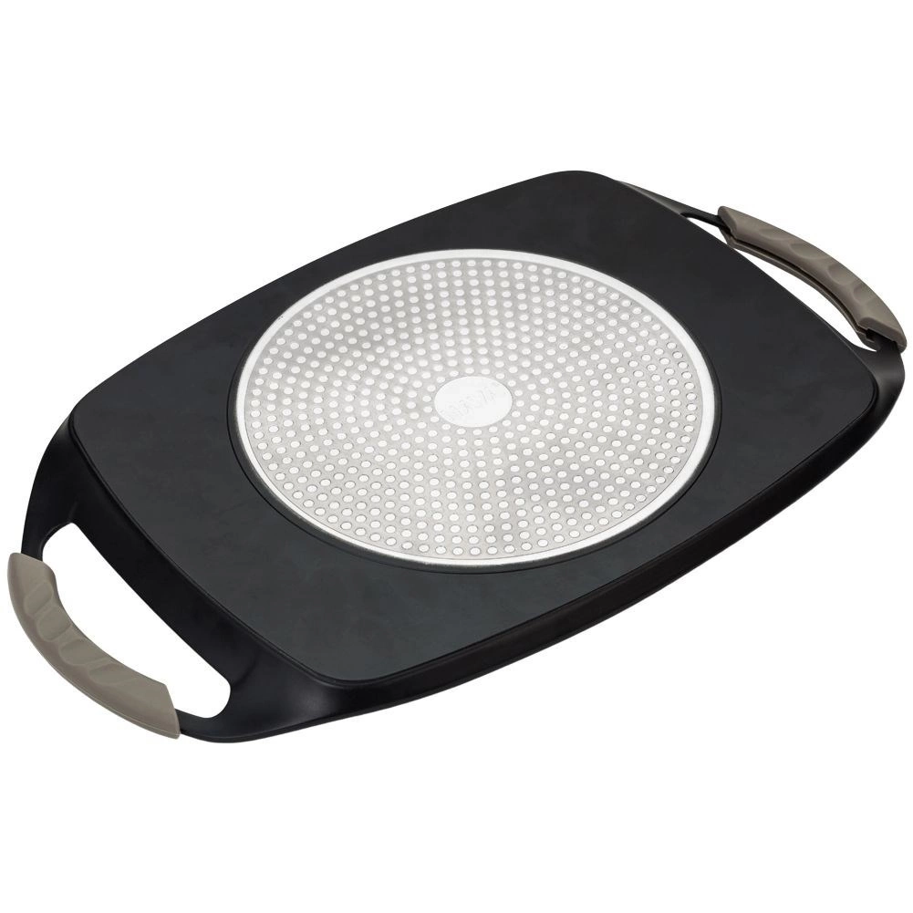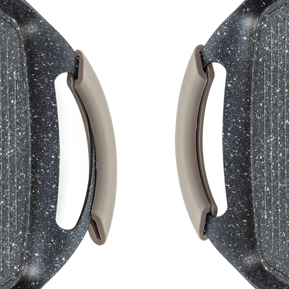 • Płyta do grillowania z pięciowarstwową nieprzywierającą powłoką granitową. Wyposażona w ściągane silikonowe uchwyty ochronne.