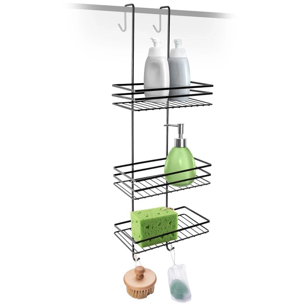 Zawieszana półka łazienkowa o wymiarach 25 x 20 x 78,5 cm. Wykonana z metalu w kolorze czarnym. Półka przeznaczona jest do zawieszania na szybie kabiny prysznicowej. Na dwóch hakach znajdujących się od wewnętrznej strony kabiny możemy powiesić np. szczotki, a na dwóch od zewnętrznej strony ręczniki lub szlafroki. Oryginalny produkt marki Vilde. Wyprodukowano zgodnie z europejskimi standardami.
