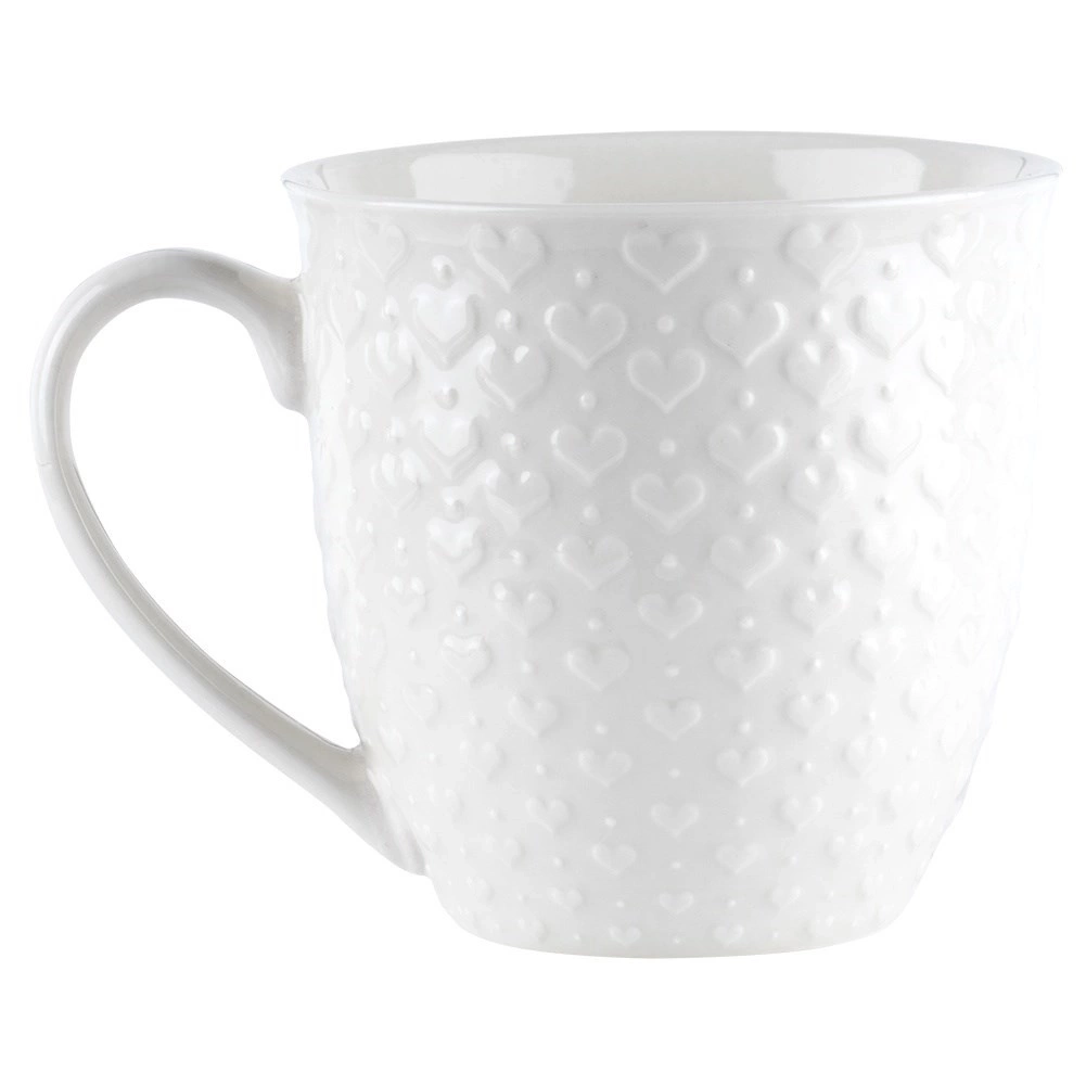 - DEKOROWANY - Utrzymany w modnej kolorystyce, kubek posiada dekor w postaci serduszek. Pięknie prezentuje się na stole.