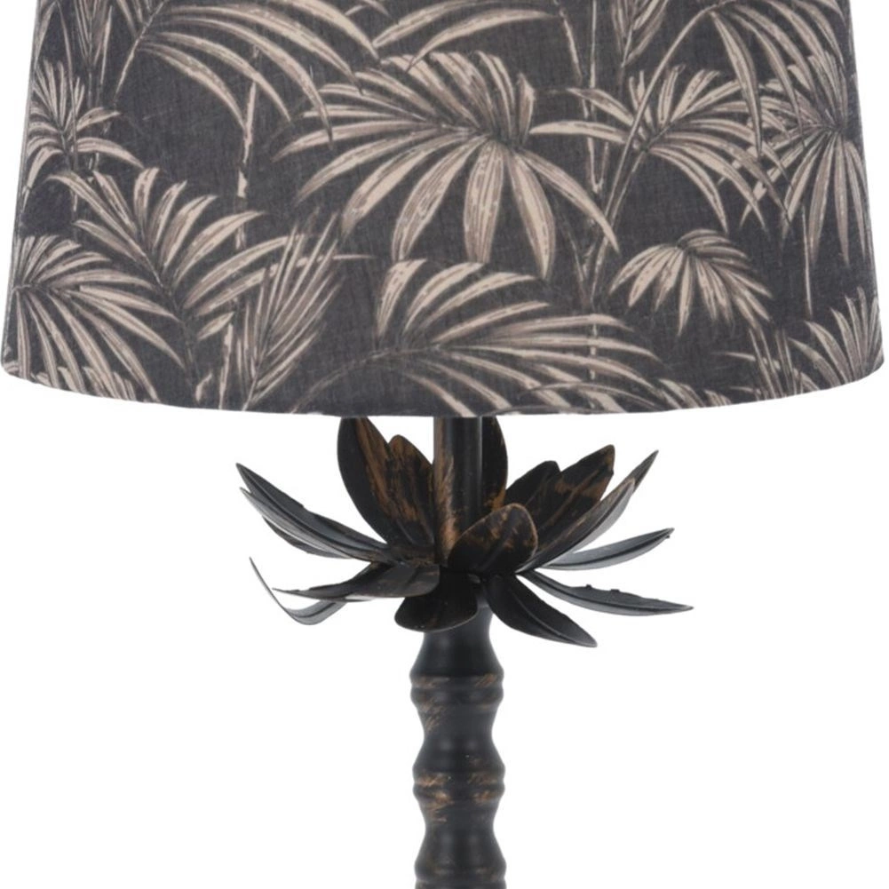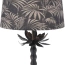 - Wyjątkowość lampy stanowi czarny abażur z motywem liści w kolorze złota.