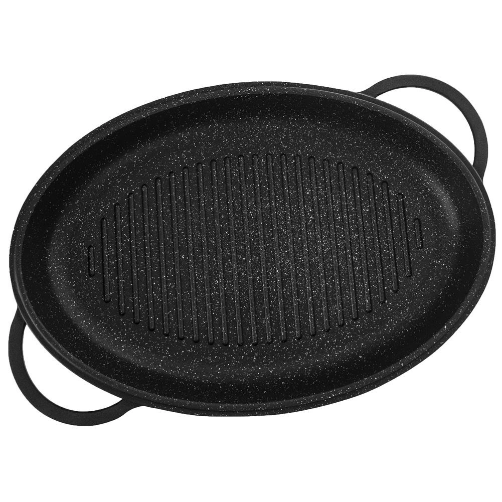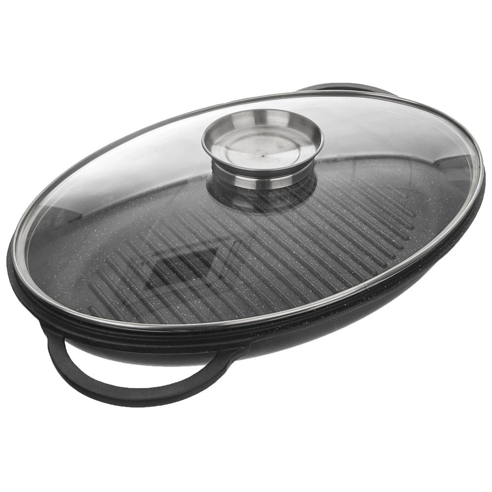 Patelnia grillowa z pokrywką posiadającą dozownik na płynne przyprawy. Wymiar całkowity brytfanny wraz z pokrywką wynosi 43 x 28 x 10 cm. Posiada grillowane dno za pomocą którego przygotujemy mięsa, ryby oraz warzywa. Możliwość stosowania na kuchence oraz w piekarniku. Nie zawiera żadnych toksycznych związków - PFOA, PTFE. Nadaje się do mycia w zmywarce do naczyń. Oryginalny produkt czeskiej marki Orion. W naszej ofercie również inne naczynia z serii GRANDE. Wyprodukowano zgodnie z europejskimi standardami.