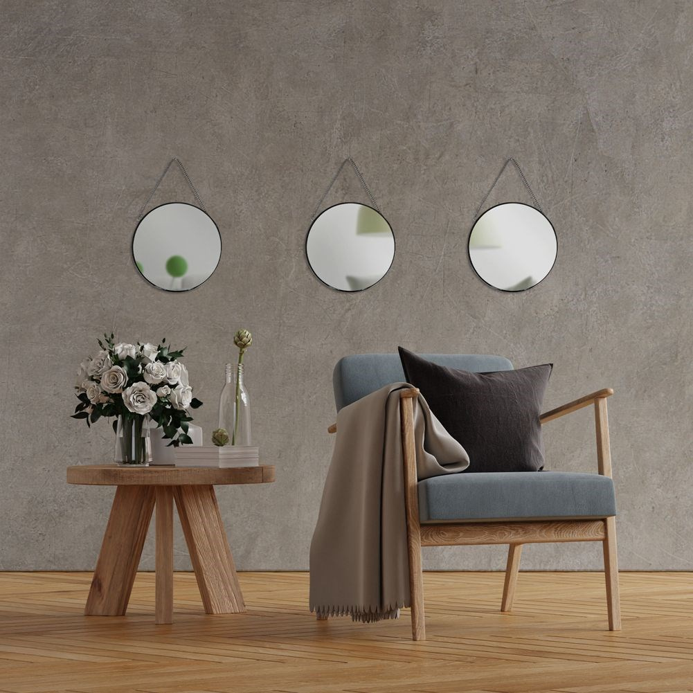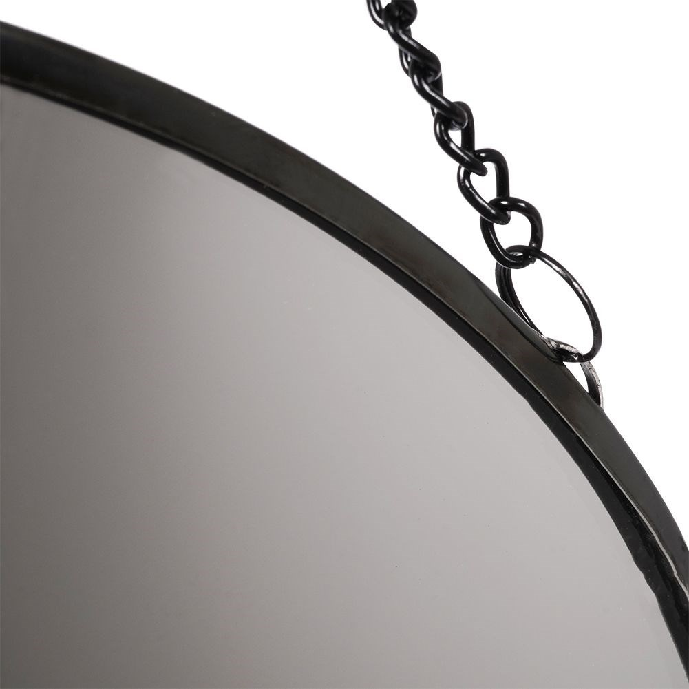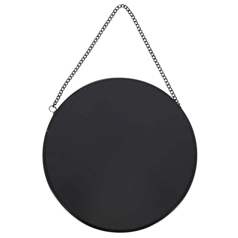 Lustro ścienne o średnicy 20 cm. Umieszczone w czarnej ramie, zawieszane na czarnym łańcuszku. Lustro będzie świetnym uzupełnieniem aranżacji mieszkania, domu lub biura. Modny design sprawi, że lustro pięknie prezentuje się w każdym wnętrzu. Wyjątkowo eleganckie. Oryginalny produkt marki Vilde. Wyprodukowano zgodnie z europejskimi standardami.