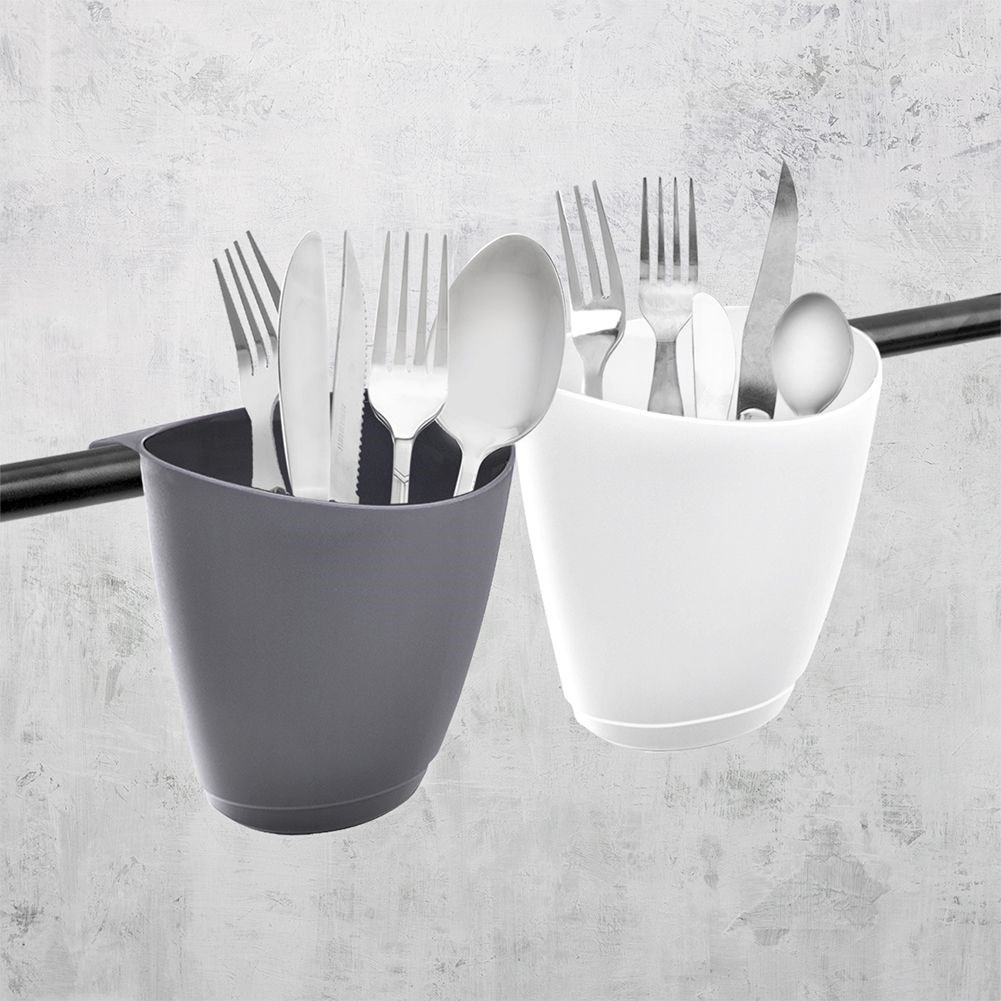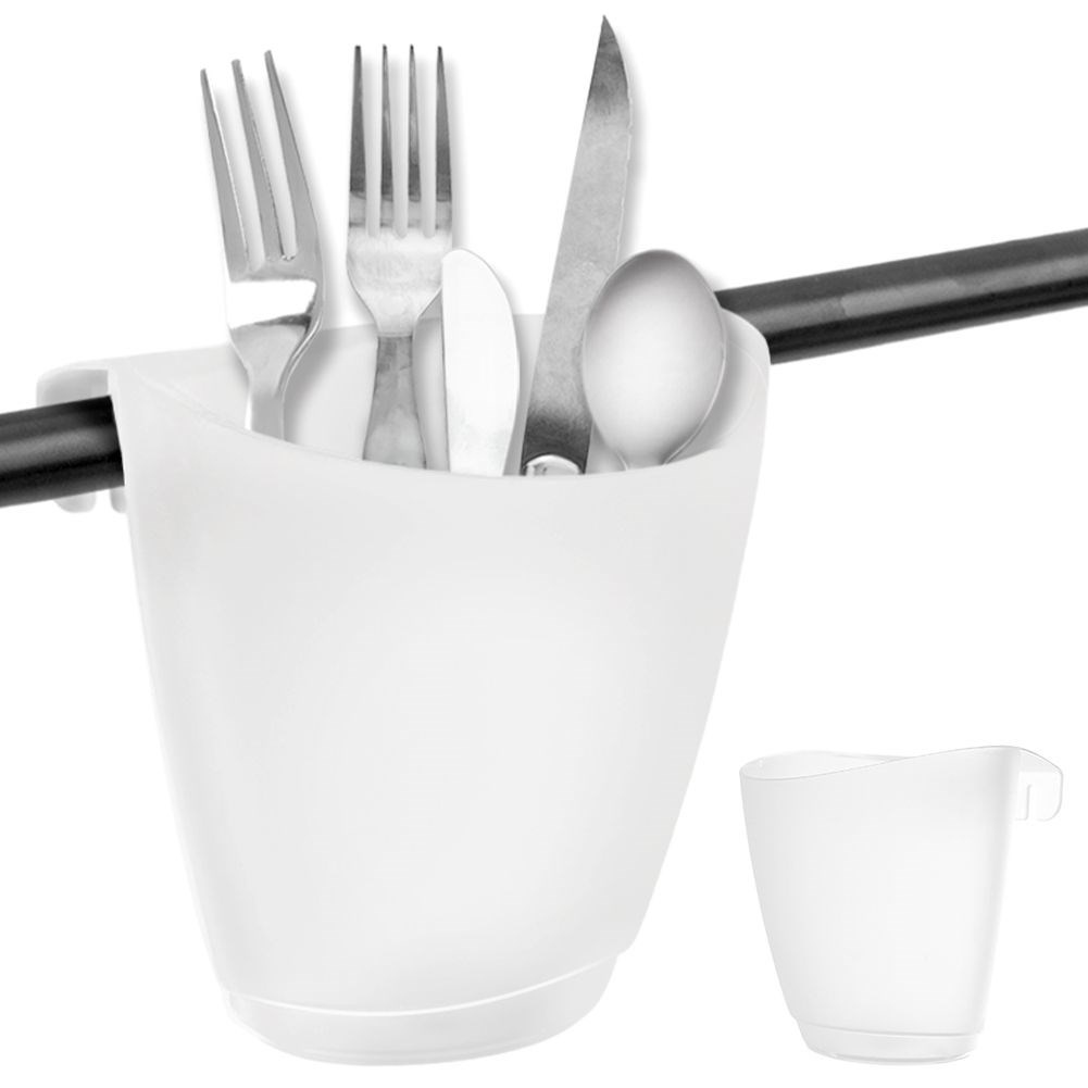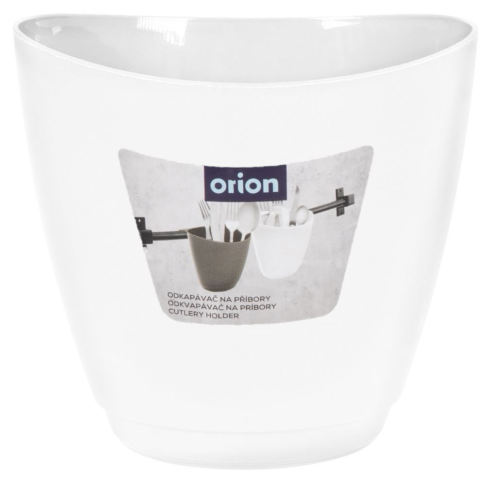 Zawieszany pojemnik na przybory kuchenne o wymiarach 13 x 12 x 12,5 cm. Wykonany z wysokiej jakości polipropylenu w kolorze białym. Jest niezwykle lekki. Dzięki odpowiedniemu uchwytowi możemy zawiesić go na drążku, relingu kuchennym. Świetnie sprawdzi się jako ociekacz na sztućce. Łatwy w czyszczeniu i wygodny w użytkowaniu. Oryginalny produkt czeskiej marki Orion. Wyprodukowano zgodnie z europejskimi standardami.