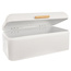 Chlebak o wymiarach 42 x 24 x 16,5 cm. Wykonany z metalu w kolorze białym. Niezwykle efektownie prezentuje się w kuchni. Posiada pokrywę otwieraną do góry za pomocą uchwytu bambusowego, która jest na zawiasach. Niezwykle pojemny, pomieści różne rodzaje pieczywa. Prosty klasyczny wzór sprawi, że pasuje do każdego wnętrza. Oryginalny produkt czeskiej marki Orion. Wyprodukowano zgodnie z europejskimi standardami.