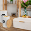 - WYGODNE OTWIERANIE - Otwierany za pomocą wygodnego bambusowego uchwytu. Posiada pokrywkę na zawiasach otwieraną od góry.