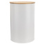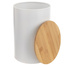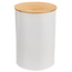 - SOLIDNY - Słoik wykonany z metalu w kolorze białym. Pokrywka wykonana z drewna bambusowego.
