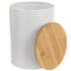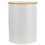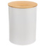 - SOLIDNY - Słoik wykonany z metalu w kolorze białym. Pokrywka wykonana z drewna bambusowego.