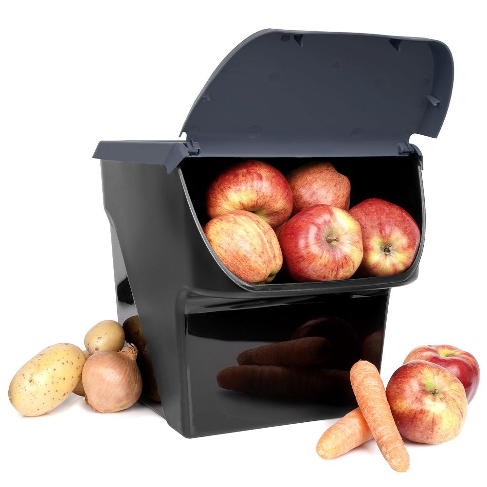 - DO PRZECHOWYWANIA - Praktyczny pojemnik do przechowywania cebuli, ziemniaków, czosnku oraz akcesoriów. Pojemnik ma wymiary 34 x 26 x 27,5 cm i pojemność 13 litrów.