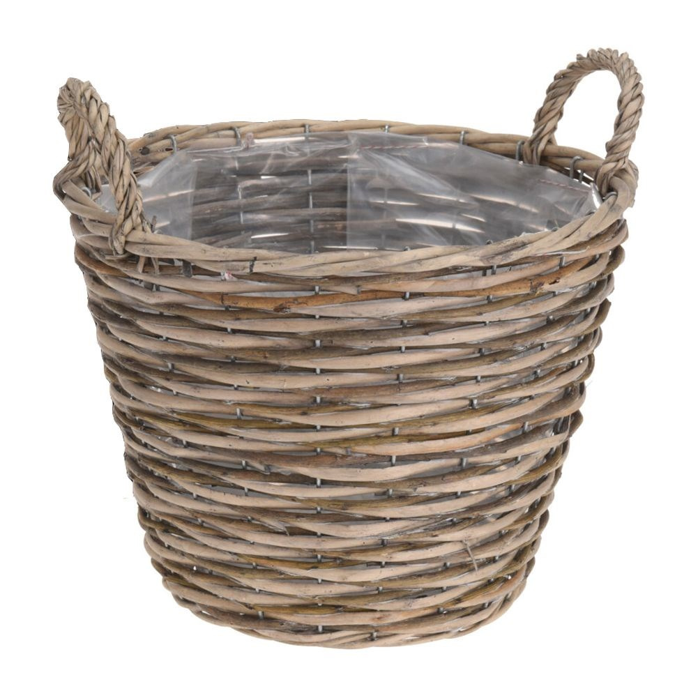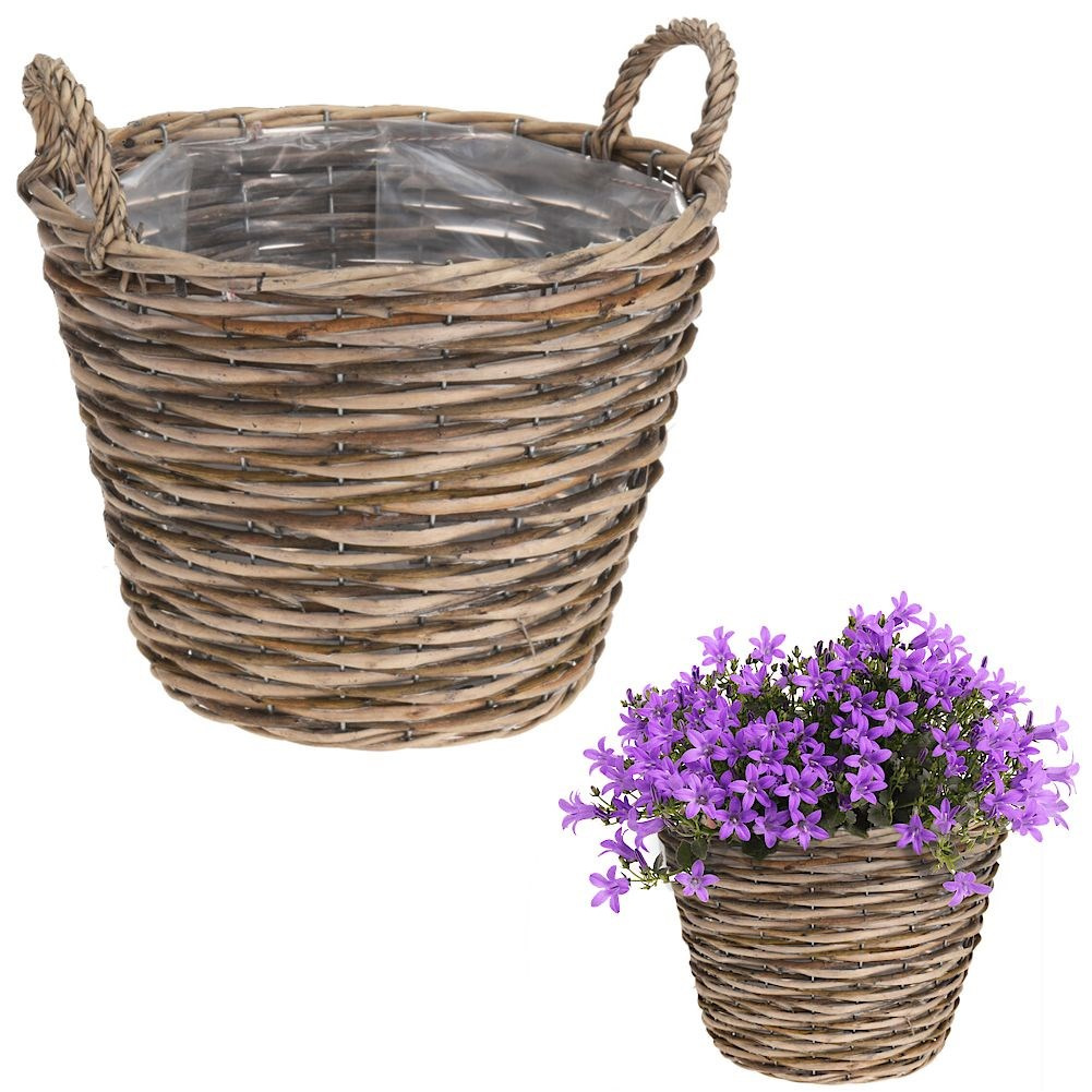 - ZABEZPIECZONA FOLIĄ - Wewnątrz wyłożona folią zapobiegającą wylewaniu nadmiaru wody. Dzięki czemu unikniemy zalania wikliny lub jej pobrudzenia od ziemi.