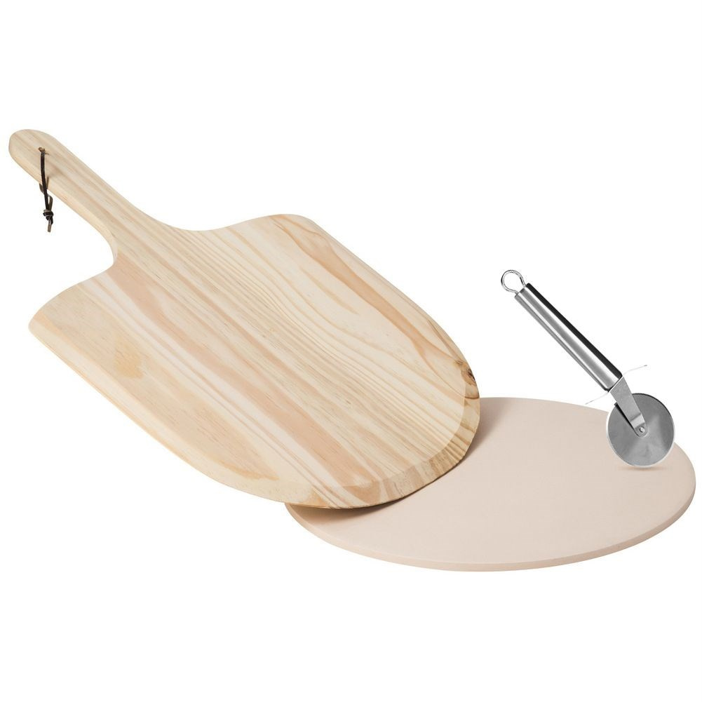 - ZESTAW DO PIZZY - Zestaw, który pozwoli nam na przygotowanie idealnej pizzy. Zestaw składa się z trzech elementów: kamień do pizzy, łopata oraz nóż do pizzy. Kamień do pizzy możemy wykorzystać również do pieczenia ciasteczek, bułeczek, pierożków itp.