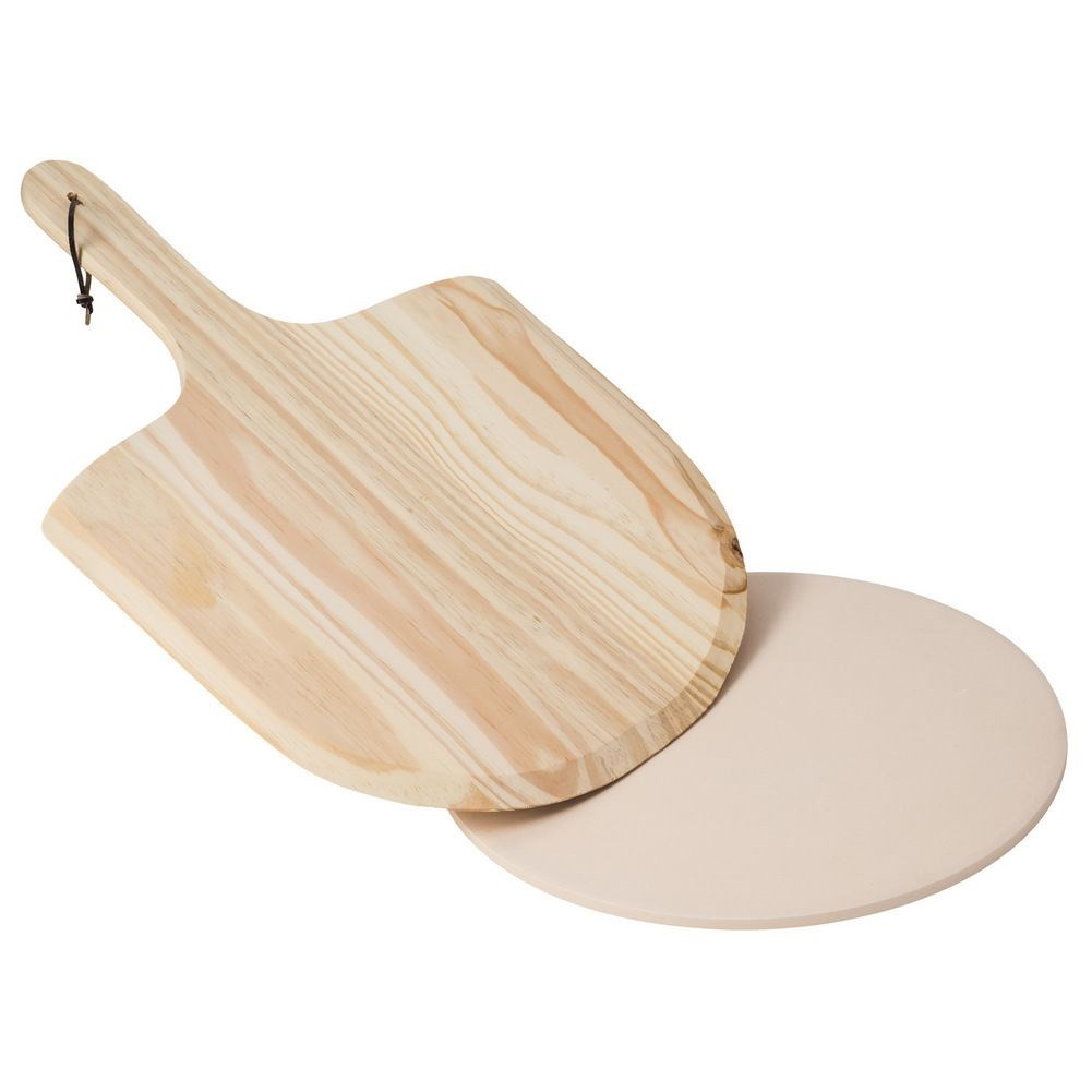 - SOLIDNY - Zestaw wykonany jest z najwyższej jakości materiałów. Kamień do pizzy wykonany jest z szamotu - to materiał, który chłonie wilgoć z ciasta sprawiając, że piecze się równomiernie i jest bardzo kruche. Taki sposób pieczenia bliski jest wykorzystywaniu pieców do pizzy. Deska wykonana z drewna, a nóż do pizzy ze stali nierdzewnej.