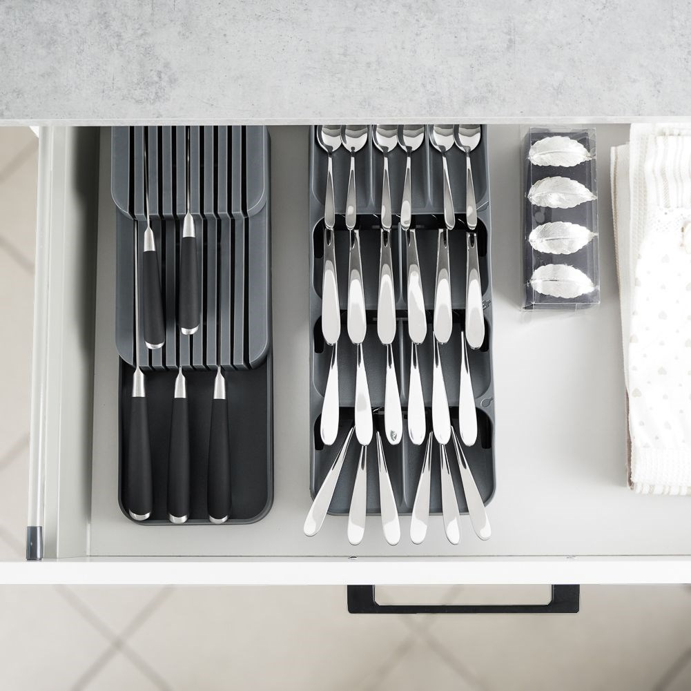 - POJEMNY - Posiada 9 przegródek do przechowywania. Z jego pomocą sztućce będą miały odpowiednie miejsce w szufladzie.