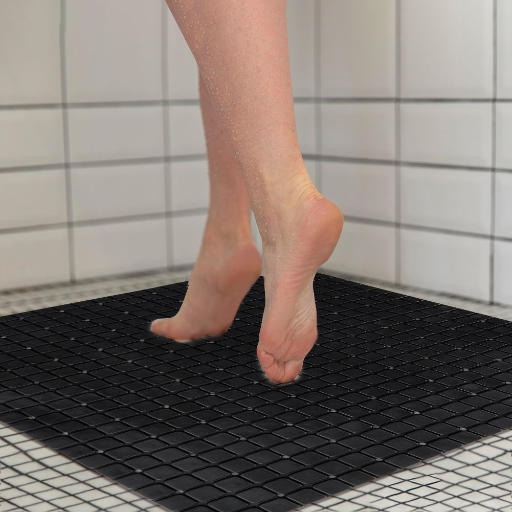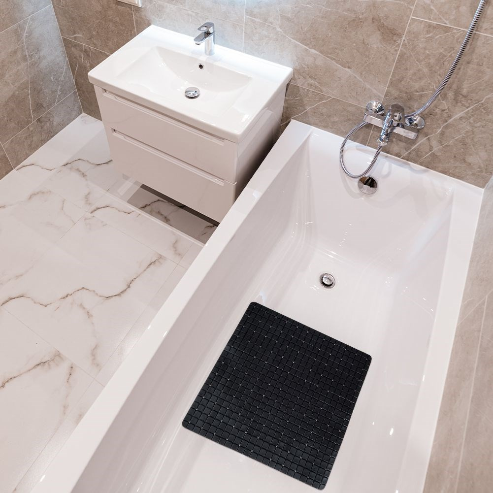 - ANTYPOŚLIZGOWA - Łazienkowa mata antypoślizgowa o wymiarach 55 x 55 cm. Sprawdzi się pod prysznicem, w brodziku lub wannie. Mocno przylega za pomocą przyssawek.
