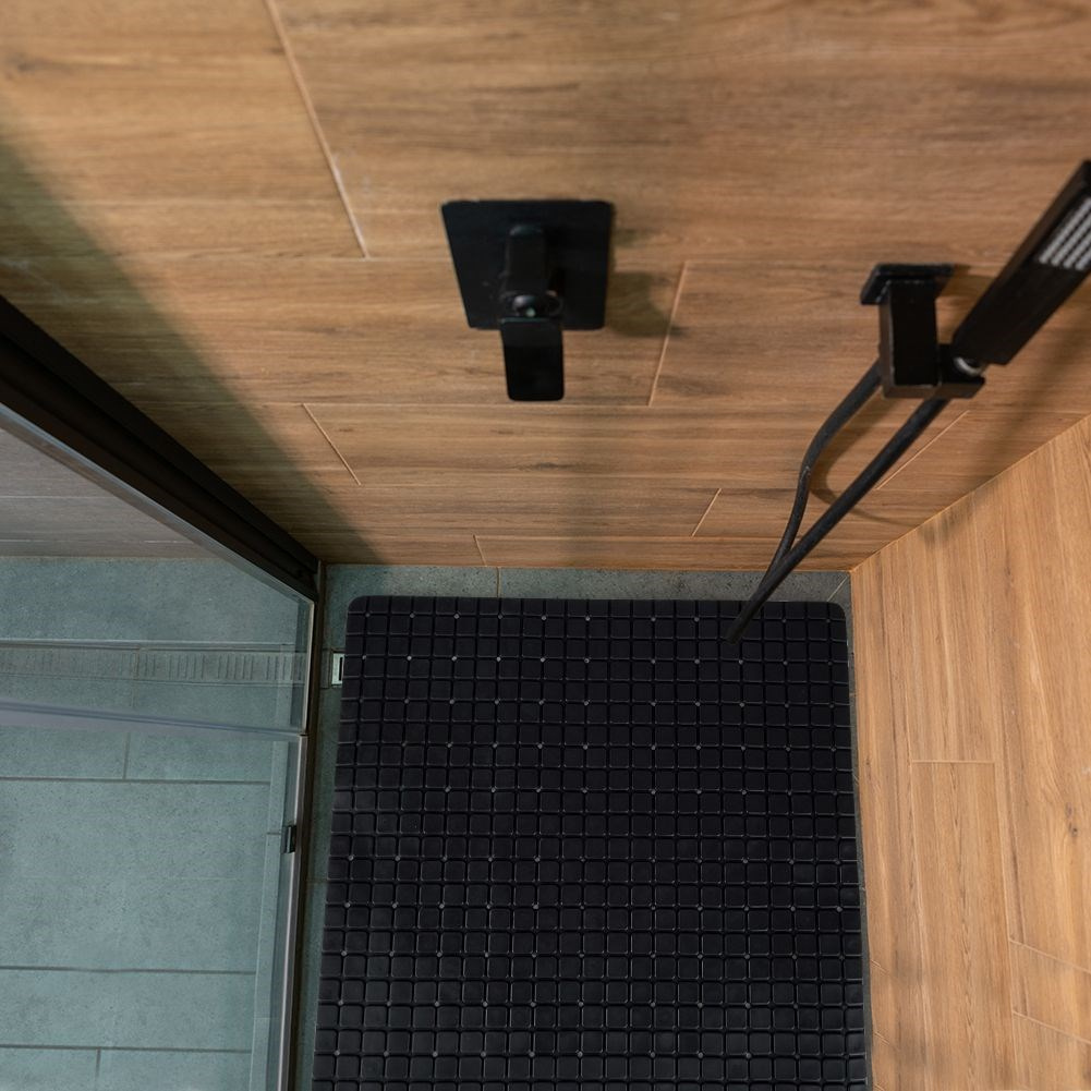 - WYTRZYMAŁA - Wykonana z wysokiej jakości tworzywa termoplastycznego. Czarny kolor maty sprawia że wkomponuje się w wystrój każdej łazienki.