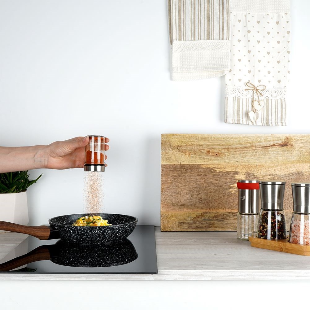 - PRZYDATNY - Podstawowe, ulubione przyprawy będą zawsze pod ręką. Przezroczyste szkło pozwoli bez problemu rozpoznać umieszczone w środku przyprawy.
