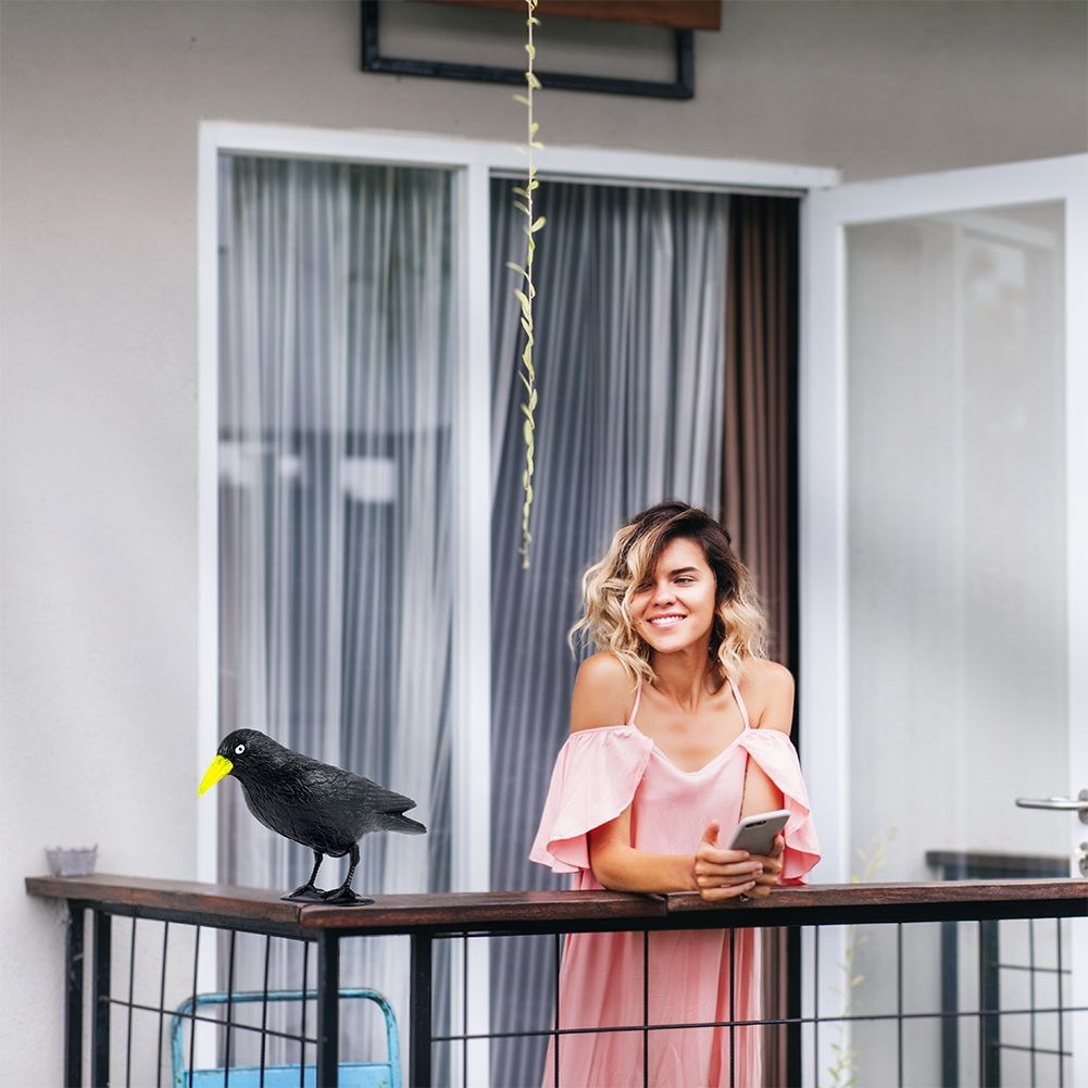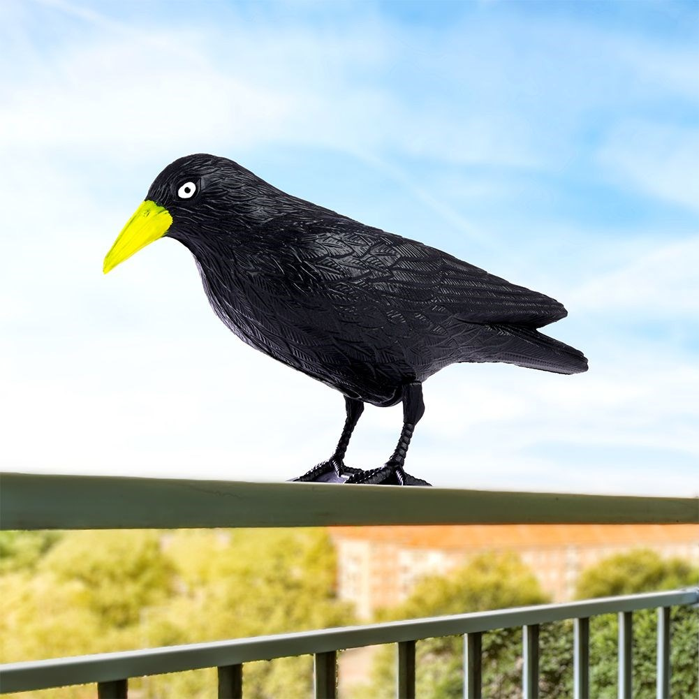 Odstraszacz ptaków w postaci kruka. Figurka wygląda bardzo realistyczna. W całości jest w kolorze czarnym, a dziób ptaka jest żółty. Dzięki realistycznemu wyglądowi skutecznie odstraszy ptaki. Można przymocować go do poręczy, zawiesić lub wbić w ziemię za pomocą dołączonego długiego szpikulca. Wyprodukowano zgodnie z europejskimi standardami.