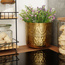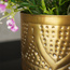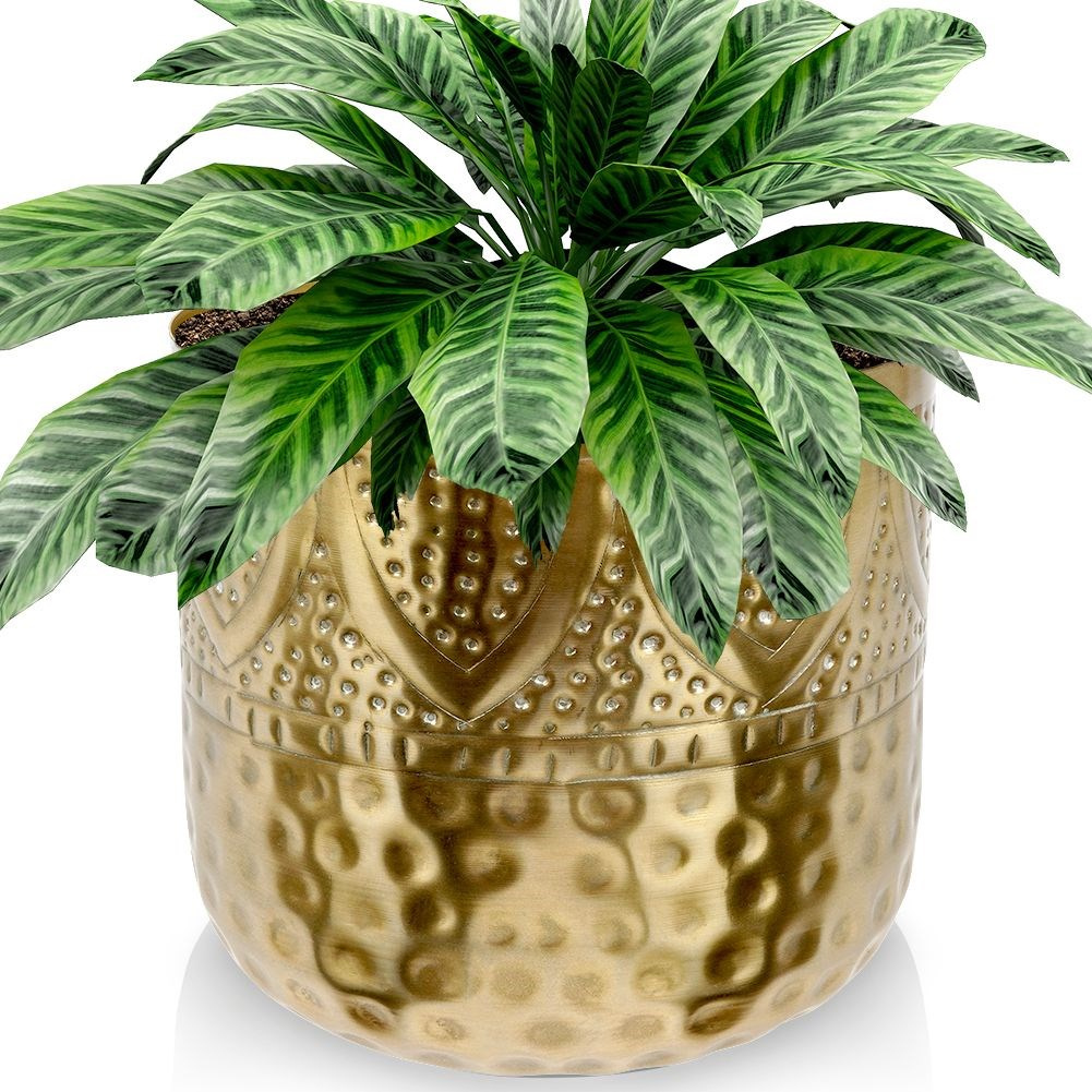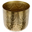 • Oryginalna osłonka na rośliny wykonana z metalu, który jest pozłacany mosiądzem. Posiada młotkowaną strukturę oraz efektowny dekor.