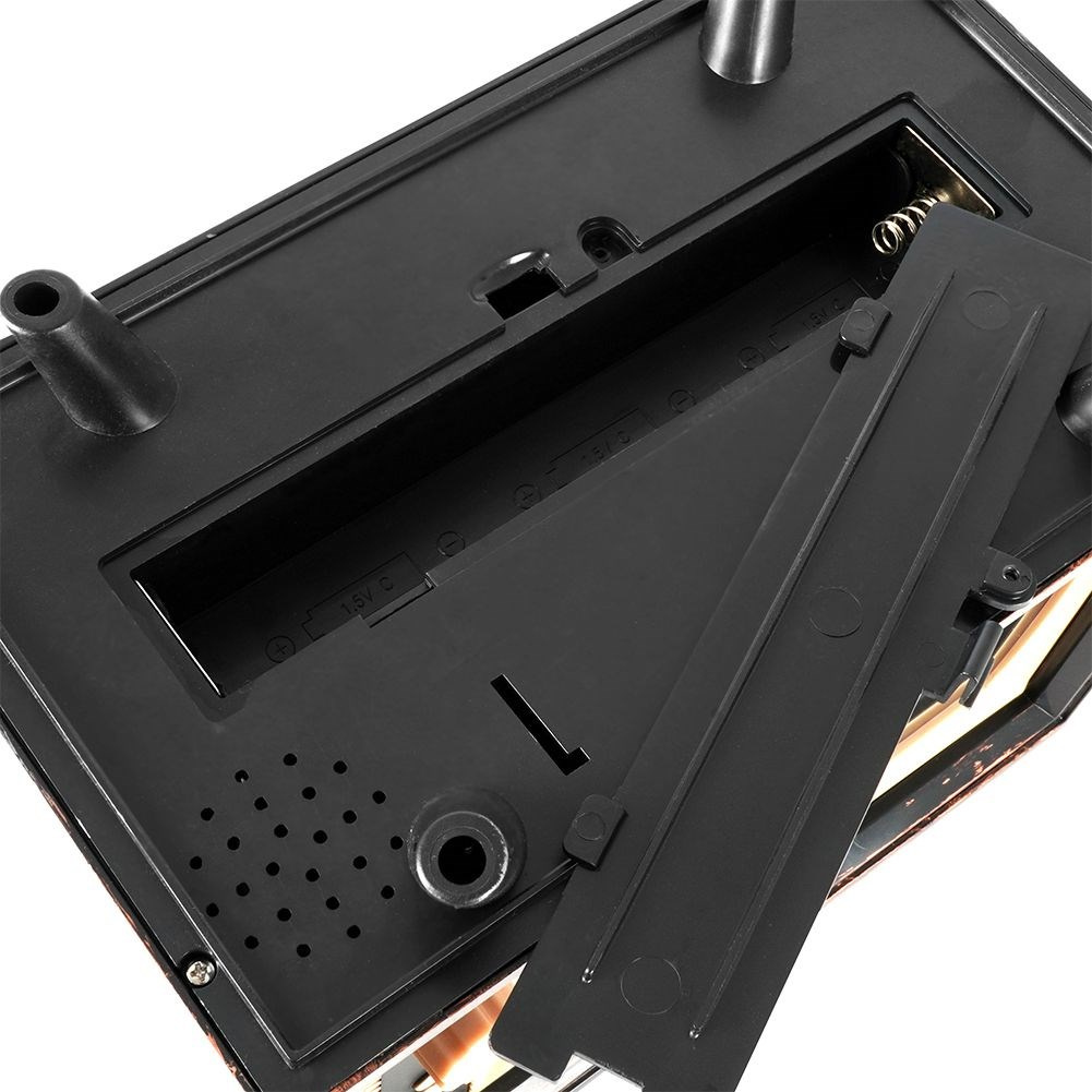 - EFEKTOWNY - Wyposażony w światło LED imitujące palące się drewno oraz płomienie ognia. Obudowa w stylu retro świetnie komponuje się z migocącymi płomieniami.