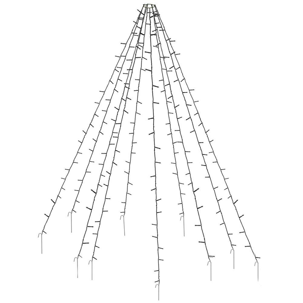 Lampki świąteczne składające się z połączonych łańcuchów, które możemy umieścić na choince, drzewku lub maszcie (maszt widoczny na zdjęciu nie jest dołączony do zestawu). Odpowiednio ułożone tworzą wyjątkową choinkę. Możemy umieścić je przed domem lub w ogrodzie. Tworzą oryginalną dekorację. Oświetlenie na maszt pozwoli w łatwy i wygodny sposób stworzyć niepowtarzalny klimat. Wyprodukowano zgodnie z europejskimi standardami.