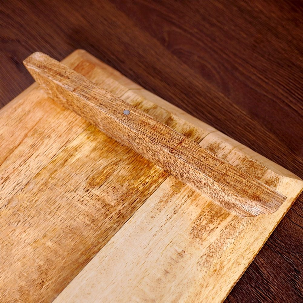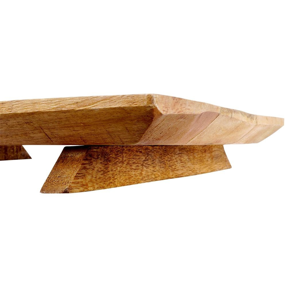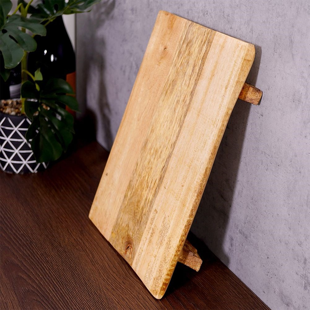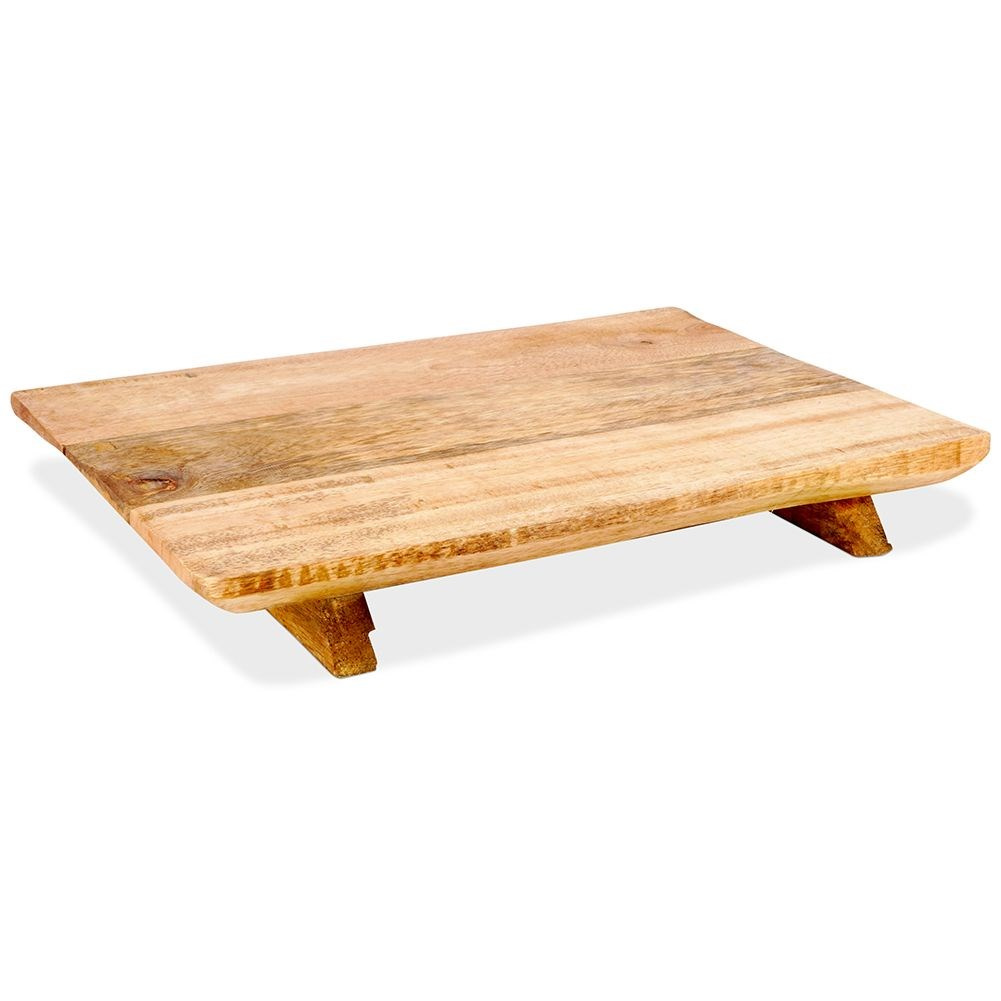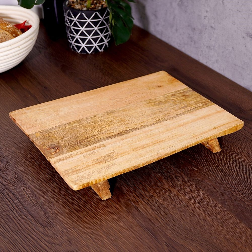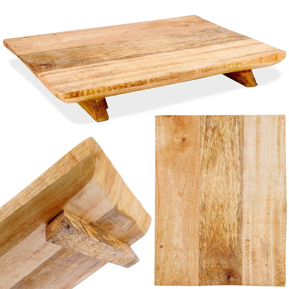 Drewniana taca do serwowania oraz krojenia na podwyższeniu. Deska jest niezwykle przydatna w każdej kuchni. Świetnie sprawdzi się do serwowania potraw i pięknie prezentuje się na stole. Solidnie wykonana jest odporna na wilgoć i odkształcenia. Bezpieczna w kontakcie z żywnością i przyjazna dla zdrowia. Oryginalny produkt marki Vilde. Wyprodukowano zgodnie z europejskimi standardami.