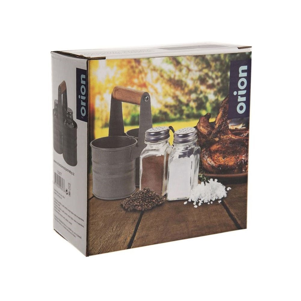 Szklany zestaw solniczki i pieprzniczki, które są umieszczone w praktycznym stojaku, który zapewni wygodne przenoszenie. Wygodne dozowanie zapewnią otwory, które pozwolą uniknąć dodania zbyt dużej ilości przypraw. Łatwe w czyszczeniu i użytkowaniu. Dozowanie przypraw z pojemnika jest dużo wygodniejsze niż bezpośrednio z torebki. Oryginalny produkt czeskiej marki Orion. Wyprodukowano zgodnie z europejskimi standardami.