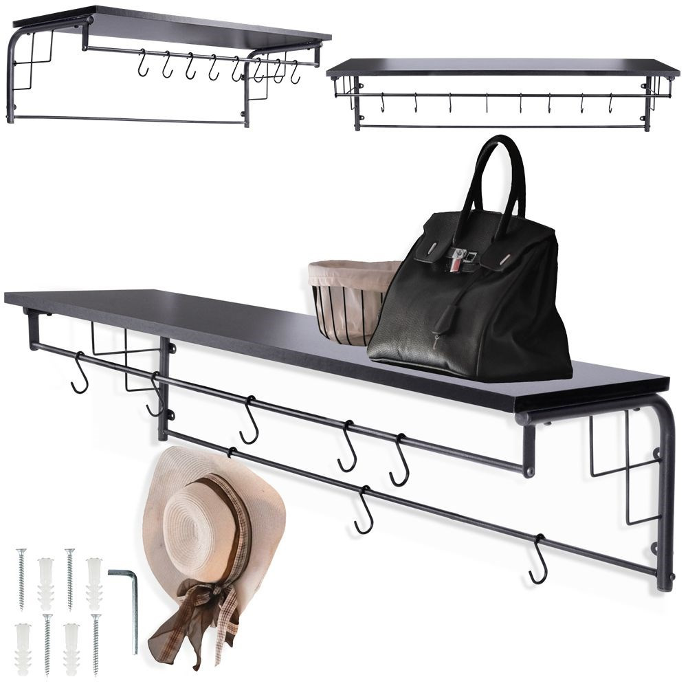 - PRAKTYCZNA - Półka z wieszakami do przedpokoju. Idealna na kurtki i płaszcze, półka pozwoli na przechowywanie czapek oraz torebek. W zestawie 8 haczyków na których możemy zawiesić odzież. Półka ma wymiary: 110 x 30 x 28,5 cm.